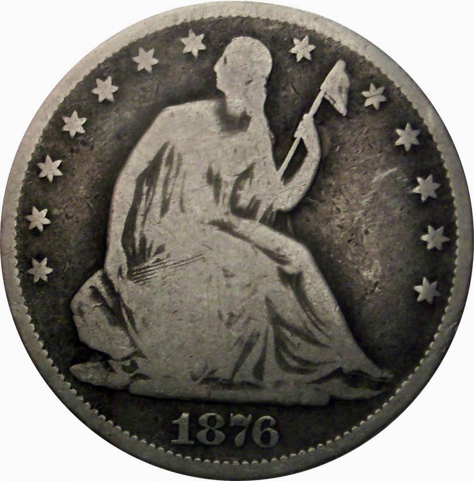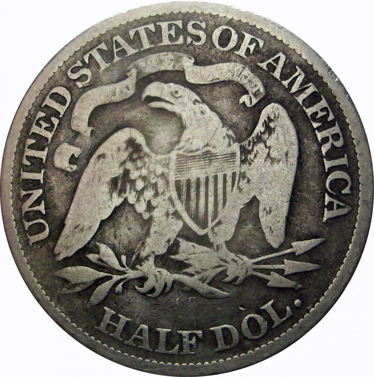 So I went to my local coin shop to sell my 1915 Barber half PCGS VG-8, and found a dealer who gave me a good offer, so I took it, then proceeded to browse coins. Somebody came into the shop for a quick buck selling a silver half and Morgan Dollar. Well I noticed the half was a seated half, and the people only wanted $30 for the both. So the dealer took the offer. They took the money and scurried off. The dealer whom I talk to much and am on a pretty good basis with, shows the half to me and I comment that I like its original patina. He says "Do you want it?" To which I reply "If the price is right." He pulls his greysheet out and tells me $20 I take a look at and notice some small scratches under the eagle, but I said "Sounds like a deal." I hand him the money and then pocketed the coin without further engagement and proceeded to look at coins. When I was done, we went on to another coin shoppe and bought a few more. Then we went home. When I came home and imaged them, I noticed the scratches in the photos, but then zoomed. I saw this: That's right! I thought those two C's were scratches! I fell outta my chair when I saw that! Here's the rest of the coin. I got a nice, wholesome and original Seated Half for $20 and couldn't be more happy. Oh, and I am so excited! I was going to start the thread by naming it "My dad's face has a rash..." and then open with "Because I was busy rubbing this in it!" ~Cannyn