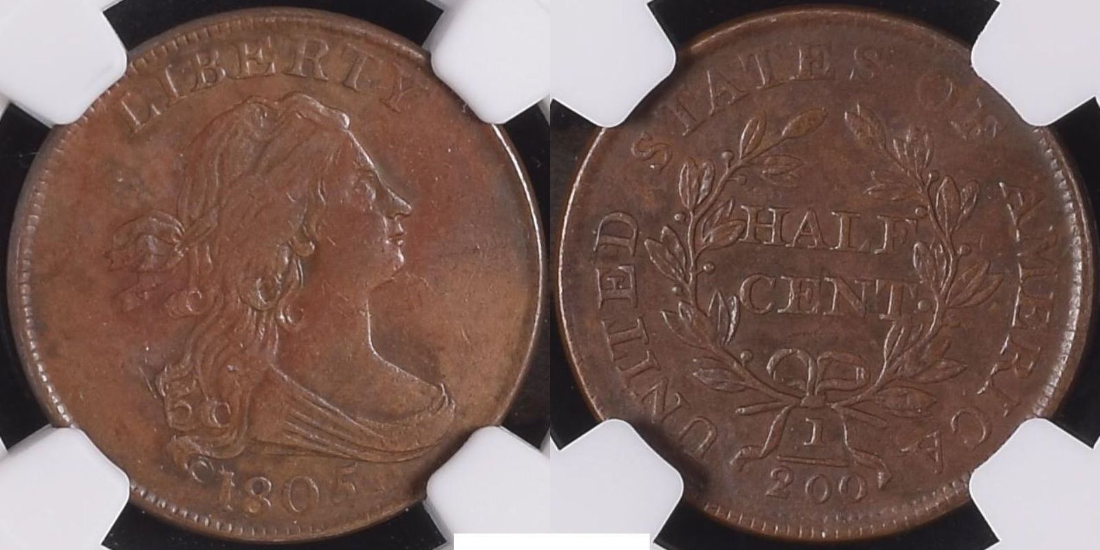 Better images of the 1805 "C-4" and XRF scan courtesy NGC. Scan indicates copper with trace amounts of zinc, nickel and iron.