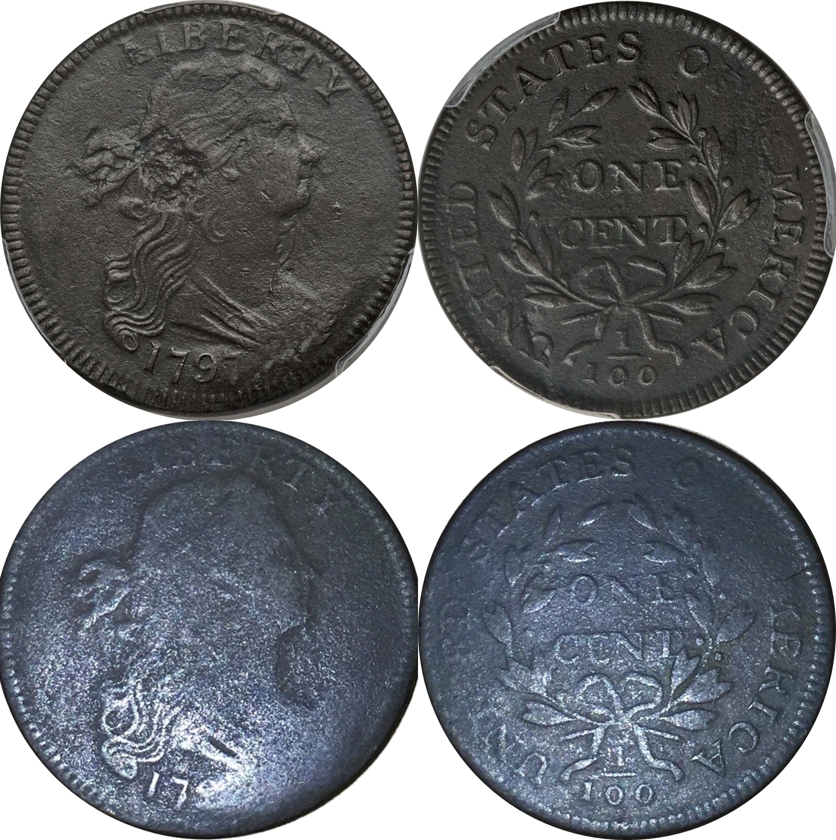 But the hardest one to explain away is the catastophic damage right of the bust on both coins beyond the swelling of the bust typical on Die State III.