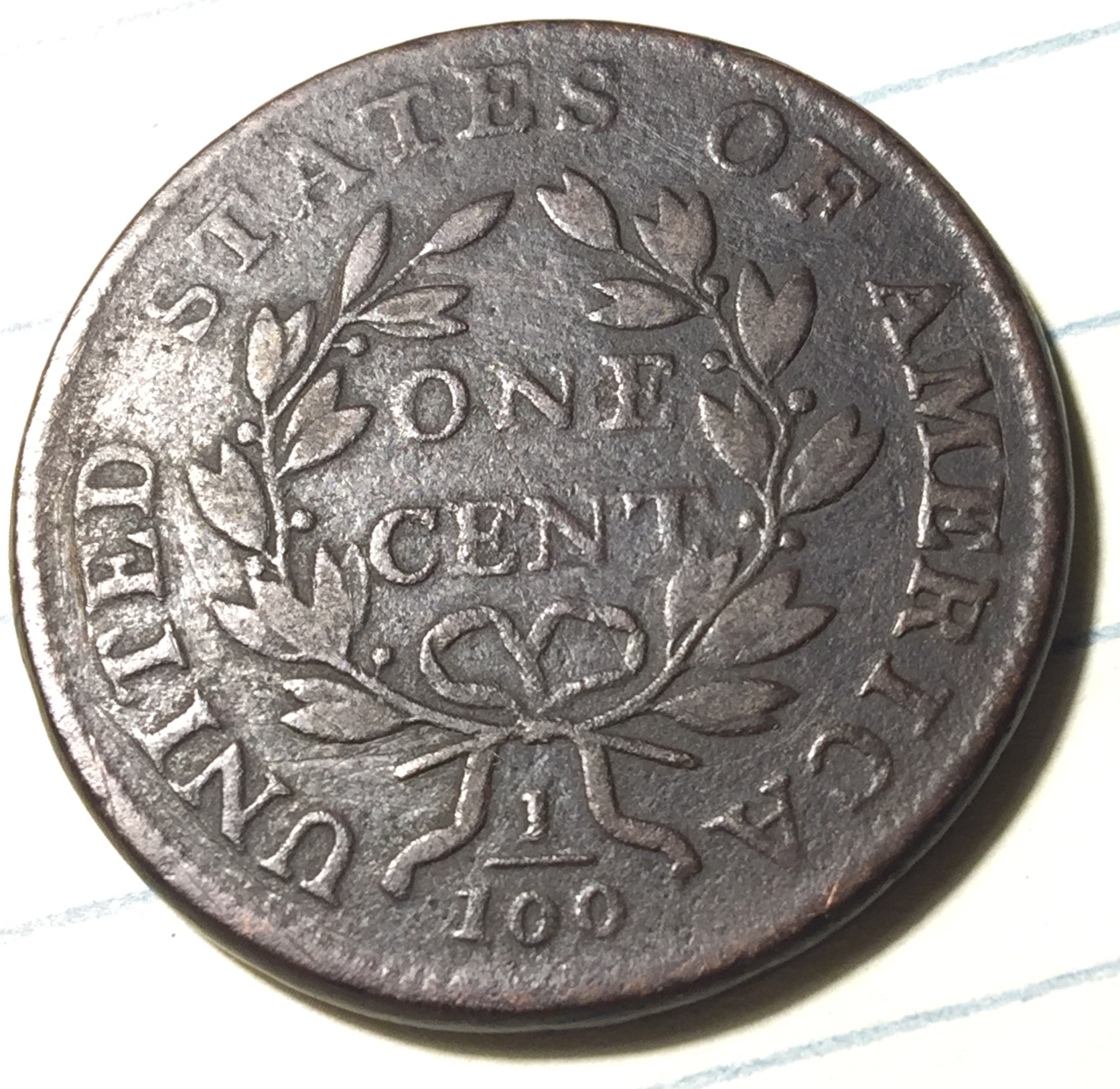 This is not particularly rare, but I needed this variety. The 1800s are a bit difficult to attribute and this had the markers for both variety and die state/stage. Spoiler to follow. Stop here if you wish to attribute it yourself. The reverse is solid as Q, but the obverse actually looks more like 11 than either 12 or 13. But it's just not sharp enough to discount a little movement of the copper to cause the illusion that it's the 11 rather than the 13.