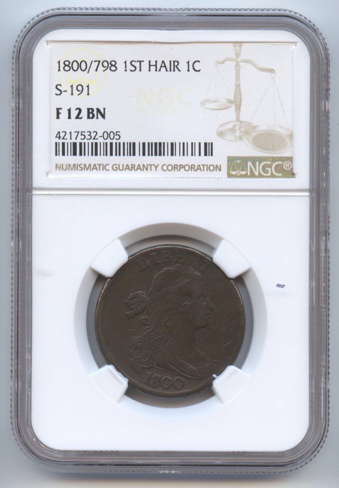 I just made a change in my usual pattern of only spending on Rarities or high grade damaged coins. I picked this up for about what I paid for the NC rarities earlier this year ($530) and I believe it is properly graded rather than market graded. It is the S-191 and the Last of the Style 1 Hair, though it is the first of the 4 varieties using this Obverse Die 1. It is also the terminal Die State according to Noyes (A/D) though Breen has 7 variety Die States and this only includes one of his Die State markers for VII. (The die break running through the D of UNITED.) Anyway, Let me know what you think. I think I'll be proud of it, even if it isn't an R5+.