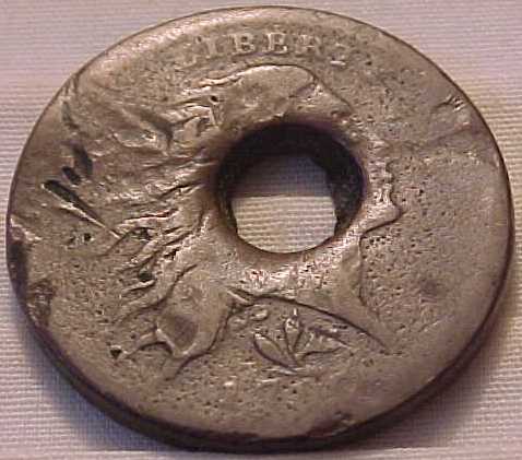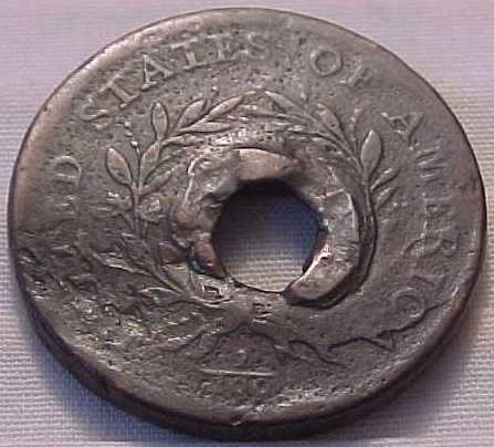 Thanks, Marshall. After staring at it again, there is damage at the "R" and only 1 leaf. So much for unique. 8-( So, most likely a 13 given all of the corrosion and pitting. I never have seen one holed and only saw pictures of one plugged. So, it has been just a filler all of these years never replaced.