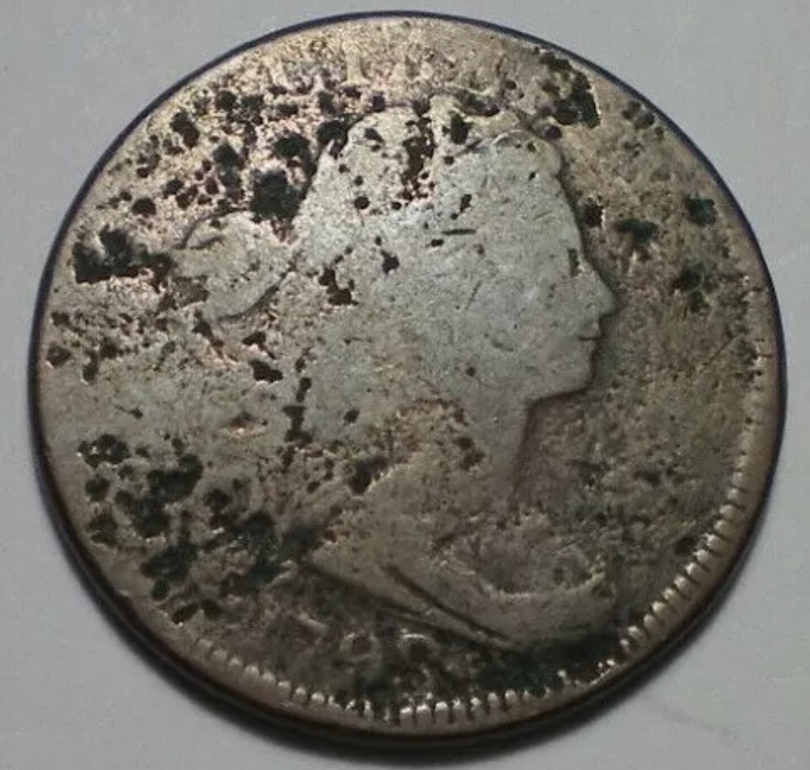 The corrosion and damage also tend to distort details as well. Here's an image of my low grade/ clipped planchet example: