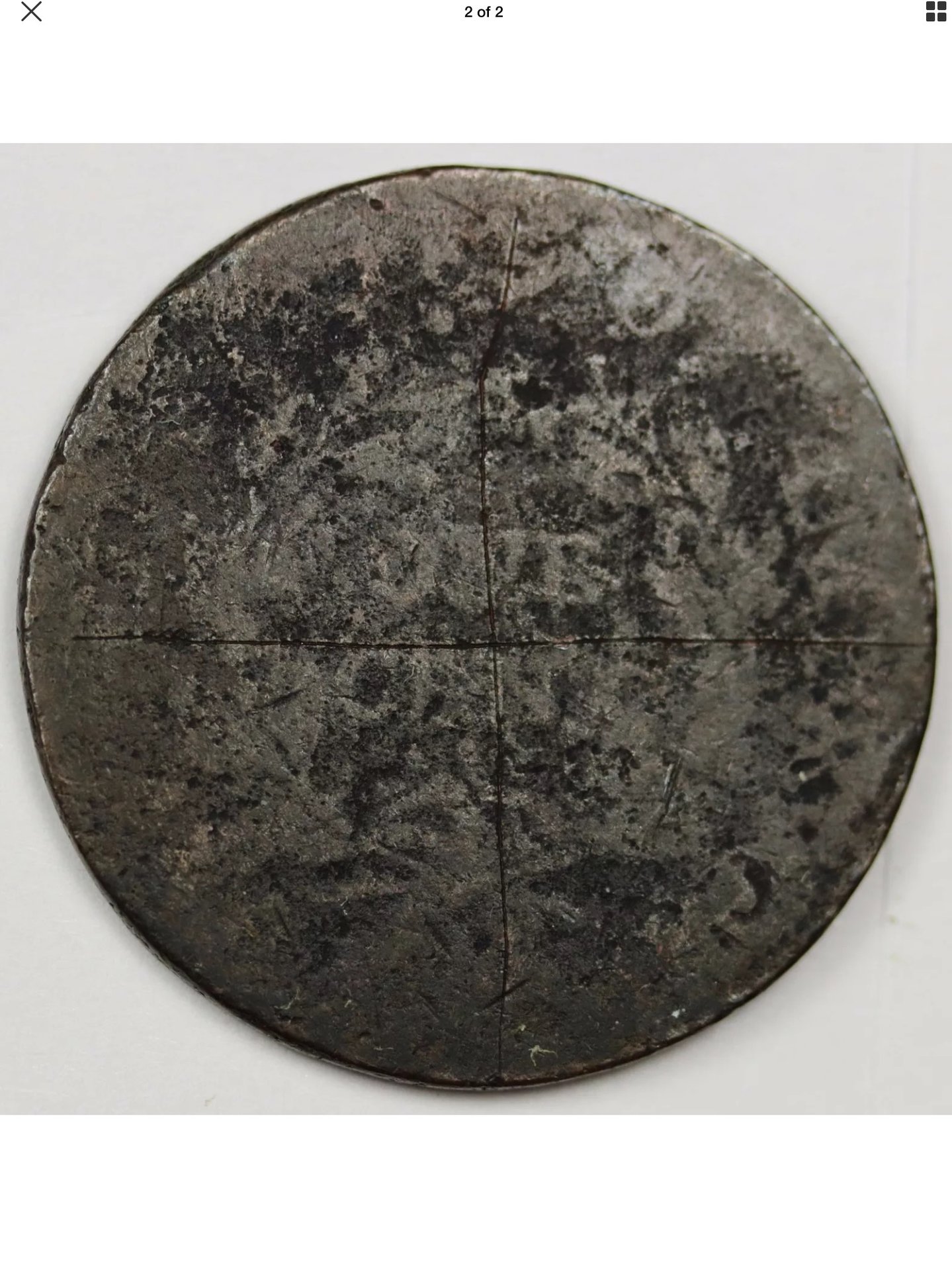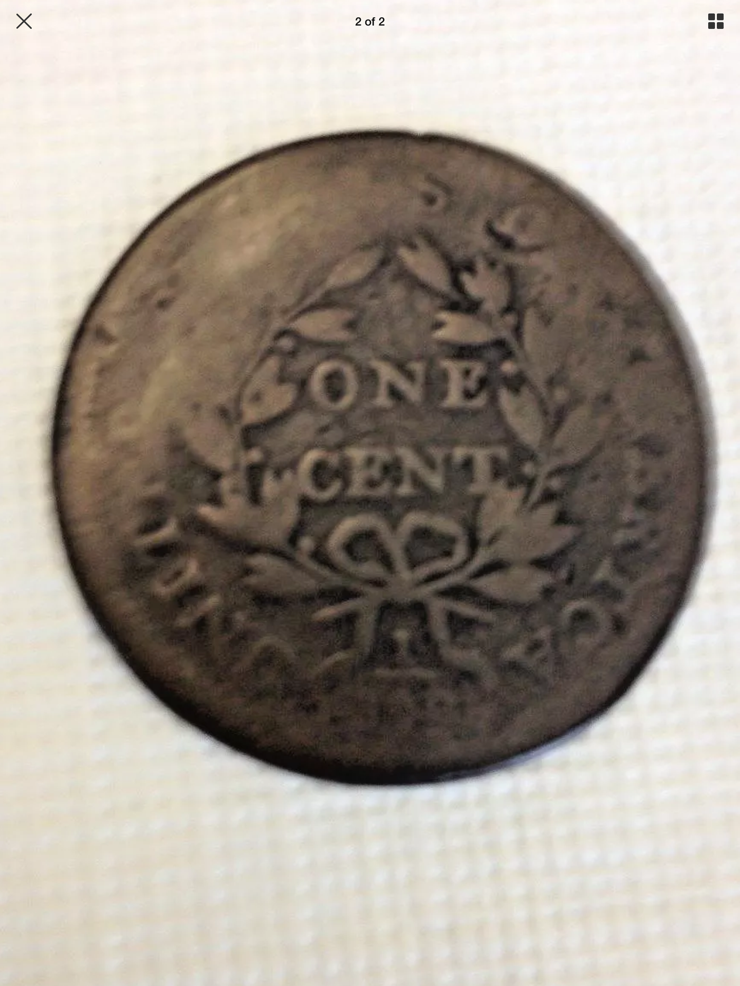So far, Draped Bust Obverse and Reverse of 94/95. If you didn't pay too much, it's worth the fun of attributing it. I'm immediately drawn to what looks like double leaves left of C(ENT) with the tips about even with the top of C. Probably because it is a diagnostic for the 1795 NC-3. But the ONE CENT is fairly well space and neither too high or low. I'll keep plugging away. I'd be interested to see whether the date is raised or depressed (which would indicate engraving.) The dark color makes me think engraved, while the shape of the 7 looks correct which doesn't usually happen when engraved. I think I've spotted it. The double leaf may be a triple leaf and the leaves under AM look right. The spacing of ONE and CENT look right as well. On the Obverse, the date, though dark, looks correct for the S-93.