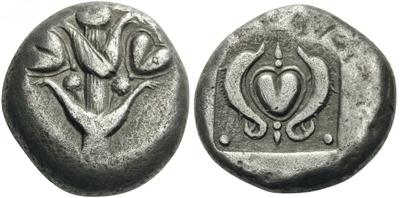Congrats! There were several bronze coins with silphium plants in that auction and one of them was a "coin of opportunity" for me as well . I had won an earlier coin and decided it needed a traveling companion so I looked ahead and saw the silphium bronzes. I picked up the lot before yours for what I think was a very low price (hammer 60 EUR, so with BP about 81 USD). I've fleshed out the attribution a bit. KYRENAIKA, Kyrene Koinon issue c. 250 BCE AE; 21 mm, 7.47 gm Obv: head of Zeus-Ammon right, wearing taenia Rev: silphium plant; monogram left; K-O / N-I / O-N Rev: Müller, Afrique 114; Buttrey, Coins 219 var. (no monogram); SNG Copenhagen 1276-9 var. (no monogram); BMC 16-9 (Koinon) I think it may be an obverse die match to this CNG coin, and you can see where the reverse legend would be if this coin were in better condition. The reverse of my coin-to-be has the same monogram. Here's an old writeup of the silphium plant: https://www.cointalk.com/threads/ancients-kyrenaikas-silphium-plant.245537/ My other silphium coins... one horrible condition rarity from Barke and one British Museum electrotype: KYRENAIKA, Barke 480-450 BC AR hemidrachm, 13 mm, 1.57 gm Obv: silphium plant Rev: head of Zeus Ammon right within linear frame, B A P K around Ref: (which I have not checked) Müller MAA 301. Very rare. KYRENAIKA, Kyrene modern copy by electrotypist Robert Ready host coin, c. 410-400 BCE, acquired by the British Museum in 1872 AR "tetradrachm", 27 mm, 16.64 gm Obv: Bearded head of Zeus-Ammon, wearing tainia with uraeus-like ornament at forehead, facing slightly left within laurel wreath Rev: silphium plant; K V P A N A (split between fields, retrograde K) Edge: initials R R Ref: BMC 77 (host coin); B.V. Head. A guide to the principal coins of the Greeks, from circ. 700 B.C. to A.D. 270. London. 1965 pl. 20, 61 (host coin); host coin BM accession number 1872,0709.361; B.V. Head. A Guide to the Select Greek and Roman Coins Exhibited in Electrotype, London. 1880. Period III C #44. https://www.cointalk.com/threads/sometimes-a-copy-will-have-to-suffice.272376/