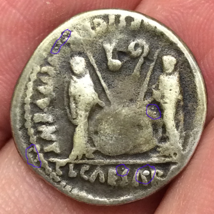 On the reverse are pearls from casting. For example near second A of CAESAR. Casting seam can be removed or avoided with lost wax. Sprue can be removed. The style looks fine so the mother must haven been an authentic coin from official dies. You can look at the edge if there are file marks and if the edge was manipulated. You can look for weight although cast fakes can weight even more if the casting mould is modified (wax or plastic impression can be lightly modified to change flan shape). You can look for casting twins or mother with same or similar flan shape, wear, scratches etc. in forgery databases or acsearch / coinarchives This pearls are not die defects or die rust, that would look different and would be present on other coins minted from same dies at same time or later, too.