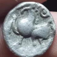 Here are my Kugelwangels from the Celts of the Danube Region. They are imitating Philip II Makedonwn. Yours looks and is sized very similar to mine, especially my first pic... Celtic Imitation Philip II AR Drachm Kugelwangel type- Agora auction Celtic Imitation Philip II drachm - pecunum auction