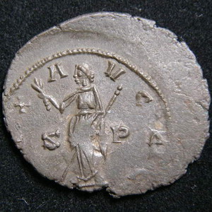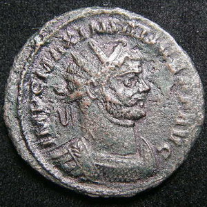 RIC V (2), Carausius, Antoninianus, No. 355: IMP C CARAVSIVS P AVG .......... PAX - A - VGGG | S .....P C in exergue Coin reverse legend ends in AVGGG - an attempt by Carausius to indicate that he, Diocletian and Maximian Heculius were a fraternity of co-equal Roman Emperors - not accepted by them. Draped, radiate, bust Colchester (Camulodunum/Clausentum) - "C" Mint 3.8 gm.