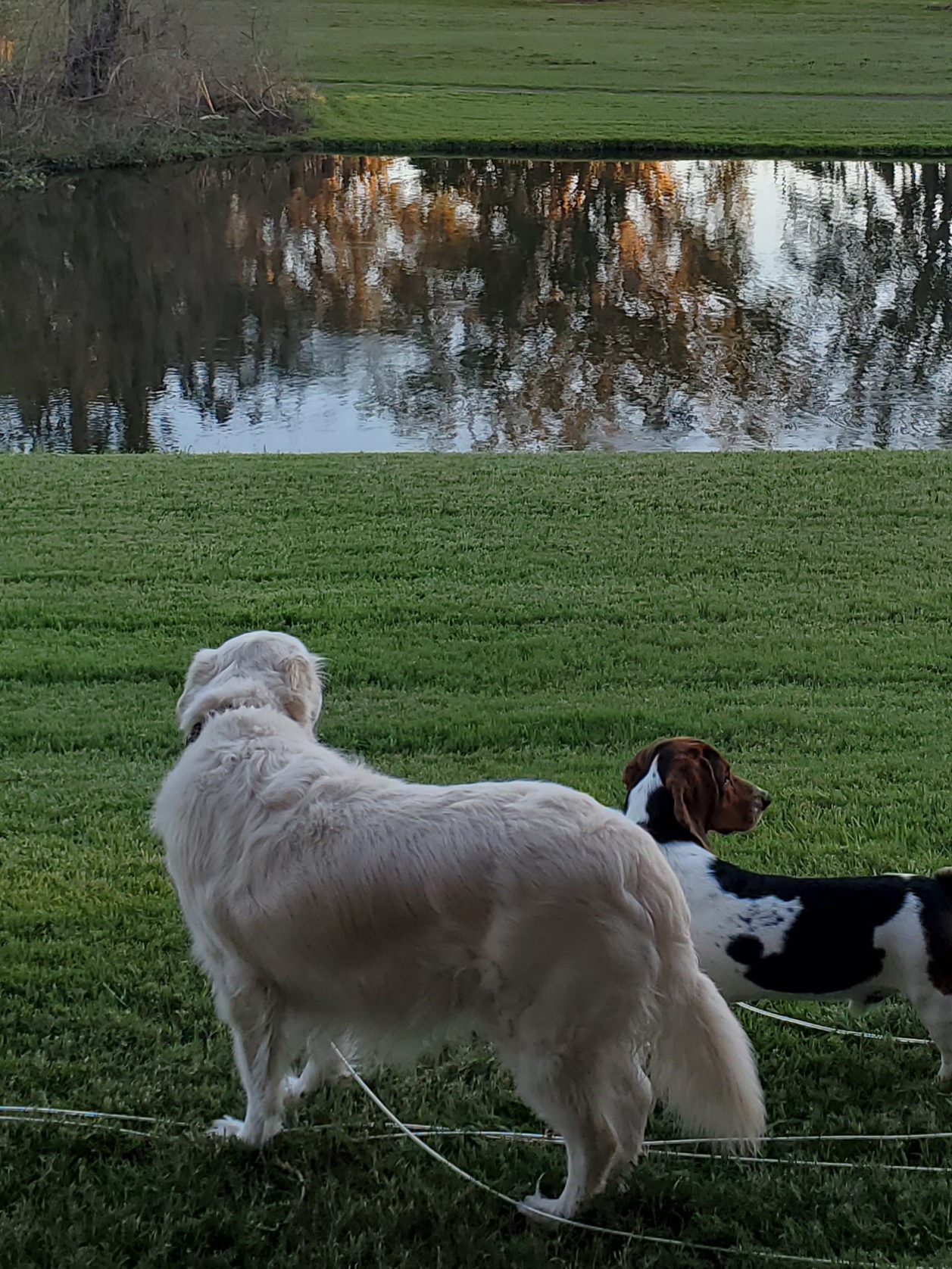 No only 1 dog technically. The English Cream Golden Retriever is mine. The little Bassett Hound is my daughter's who still lives at home. So I guess I own 2 but my other half has already purchased another Golden who was just born a few days ago. So in 8 weeks I will have 3 lol. God help me!
