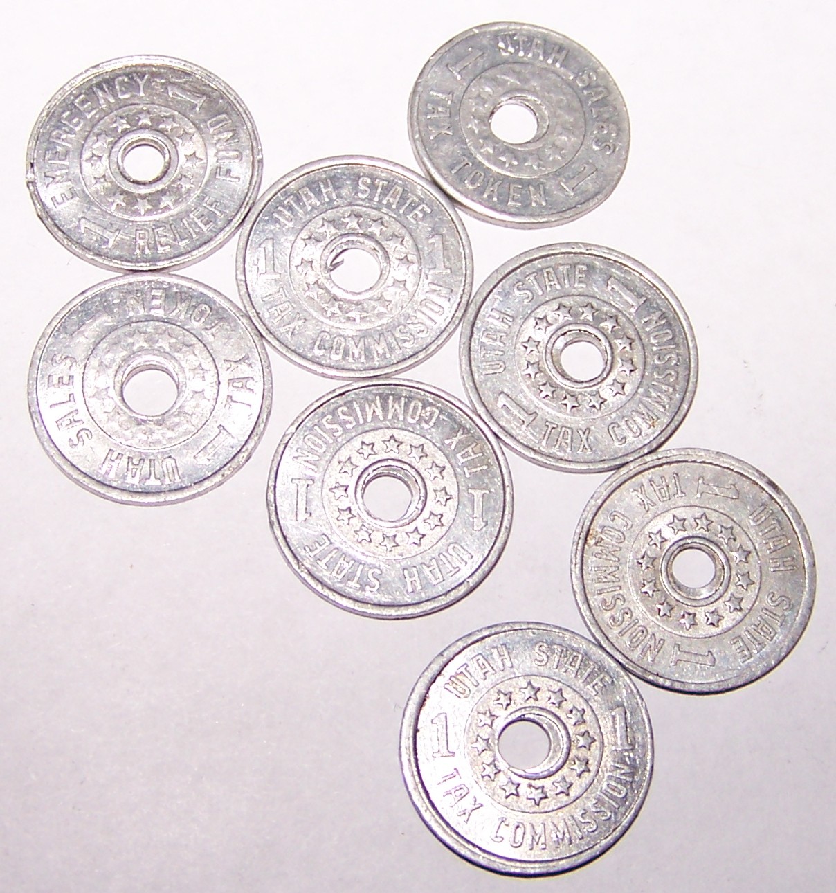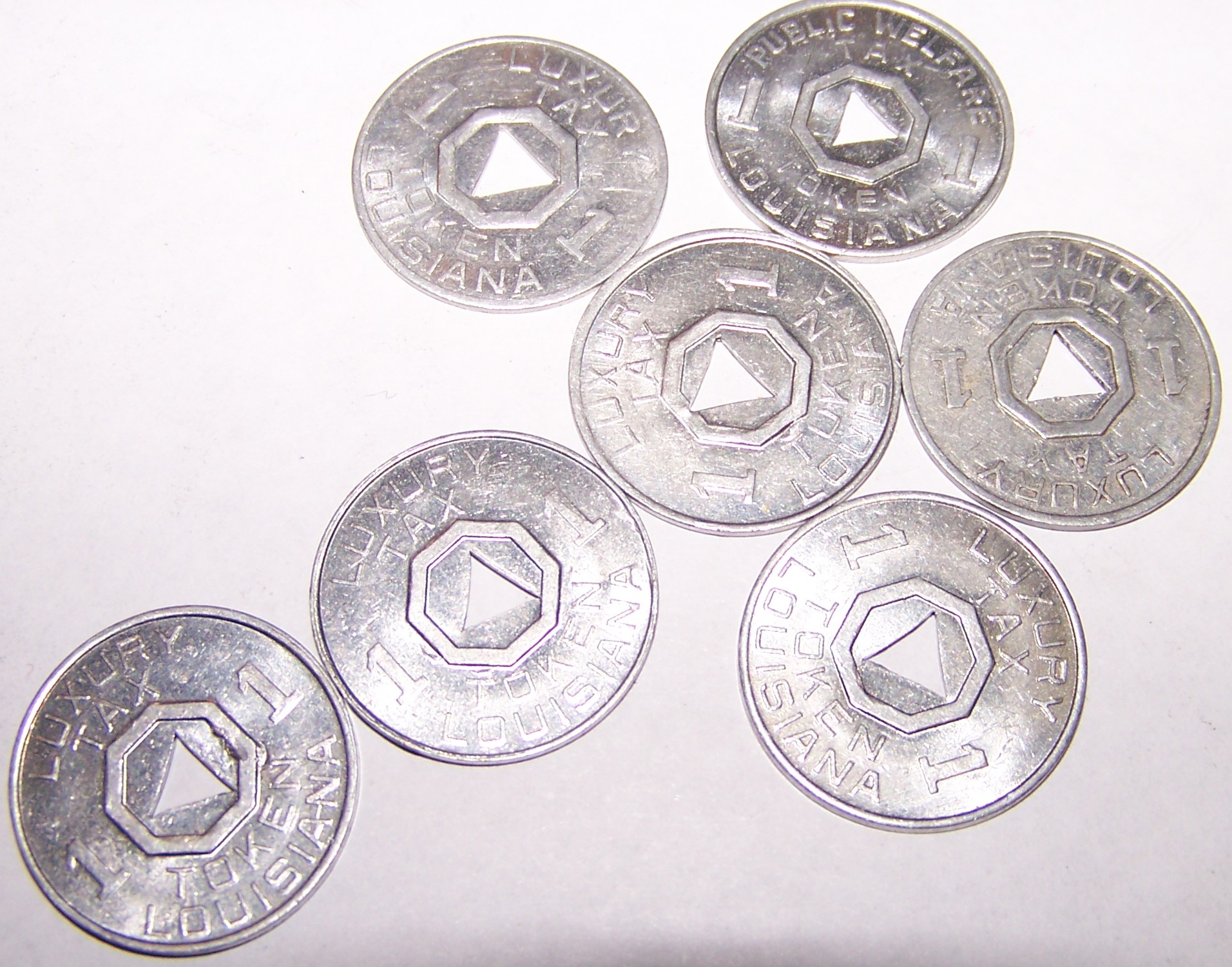 Here are some coins that I find interesting. I don't know much about them, there appears to be some "tax" tokes and "parking coins". Check out the elderly assistance coin.