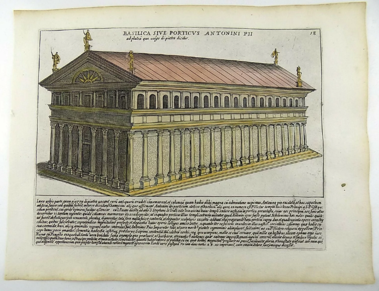 Sallent, those are really, really spectacular prints. That is a wonderful era, when modern scholarship/archaeology was starting to feel its way around the Greek and Roman ruins. Sure, they got some of the archaeological facts wrong, but their efforts are still lovely to look at. That "Temple of Antoninus Pius" is interesting - this does not appear to be the Temple of Antoninus Pius & Faustina in the Roman Forum. "Basilica and Porticus" is what the engraving says, but I've never heard of such a structure (but there are a lot of things I don't know). I wonder if this is an early idea about the Basilica Julia in the Forum? I'd like to see some photos of them framed and hung, if you get a chance.