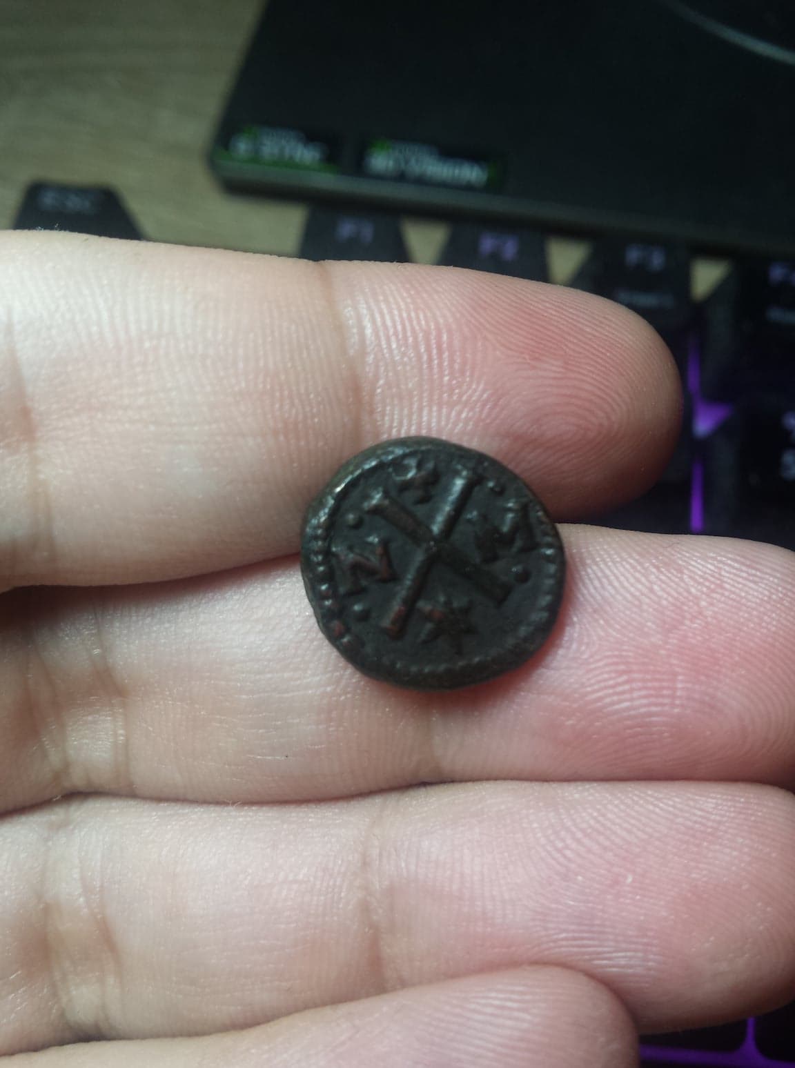 How about this one? This is a side I like how it is and would be one of the few I would not clean, but the other side is a mess and most probably needs some intervention. Still need to assess what to do. Alexius I, half tetarteron, 14 mm, 1.1 gr, the nice side.