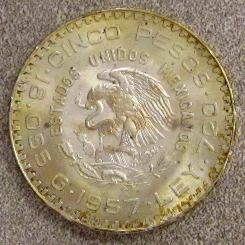 The mexico coin photo from Scottishmoney is no longer displayed on page #2. I will offer my NEWP to take its place. :smile 1957 Mexico 5 Peso KM# 470 mintage 200,000 .720 Silver coin