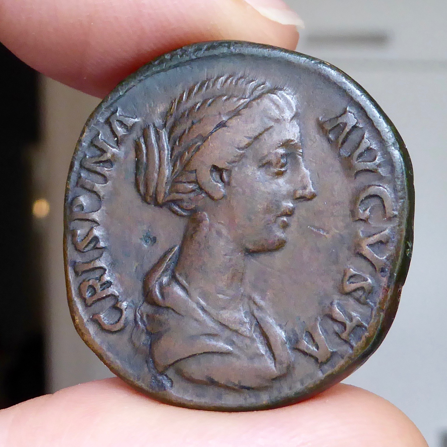 The OP coin is beautiful. I have yet to add a Sestertius of her and this thread is making me want to hunt one down! I do have three coins of Crispina, the first has (IMHO) a beautiful portrait of her. I think all three of my coins would fall under Hairstyle 1.