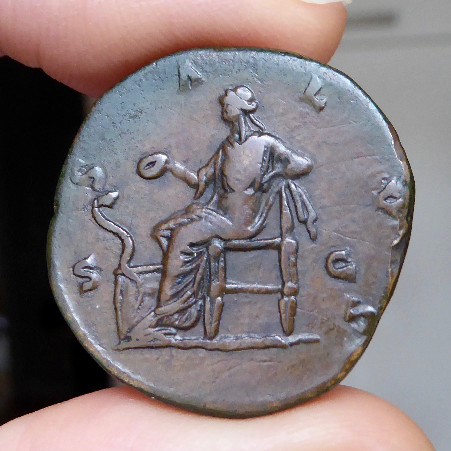 That OP coin is gorgeous, @Julius Germanicus ! Antonine-era sestertii circulated for years and are typically found well-worn. Higher-grade, problem-free coins such as yours are quite scarce indeed. That's an acquisition you can be proud of. Here are my Crispina Sestertii. These are typical, humbler examples. You can see there are a couple of varieties of hairstyle. Of the couple dozen types issued for this empress in bronze, only one has the longer legend referencing her role as wife of Commodus, CRISPINA AVG IMP COMMODI AVG. It is the fourth of my five examples: Rome, AD 180-182 19.63 g; 30.3 mm Obv: CRISPINA AVGVSTA, bare-headed and draped bust, right Rev: CONCORDIA SC, Concordia seated left, holding patera and cornucopiae Refs: RIC 556; BMCRE 406-410; RCV 6004; Cohen 6; MIR 4 Rome, AD 180-182 20.50 g; 30.7 mm Obv: CRISPINA AVGVSTA, bare-headed and draped bust, right Rev: LAETITIA SC, Laetitia standing left, holding wreath and rudder on globe Refs: RIC 669; BMCRE 416-417; RCV 6007; Cohen 27 Rome, AD 177-182 21.12 g; 30.2 mm Obv: CRISPINA AVGVSTA, bare-headed and draped bust, right Rev: SALVS SC, Salus seated left, feeding out of a patera a snake coiled around altar, left arm on side of chair Refs: RIC 672a; BMCRE 420-422; RCV 6010; Cohen 33 Rome, AD 178-180 19.95 g; 28.1 mm Obv: CRISPINA AVG IMP COMMODI AVG, bare-headed and draped bust, right Rev: SALVS SC, Salus seated left, feeding out of a patera a snake coiled around altar, left arm on side of chair Refs: RIC 672b; BMCRE 423; RCV 6009; Cohen 32; MIR 18 Rome, AD 180-182 18.62 g; 30.9 mm Obv: CRISPINA AVGVSTA, bare-headed and draped bust, right Rev: VENVS FELIX SC, Venus seated left, holding Victory and scepter Refs: RIC 673; BMCRE 424-425; RCV 6011; Cohen 40; MIR 21