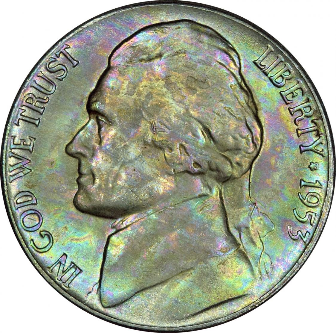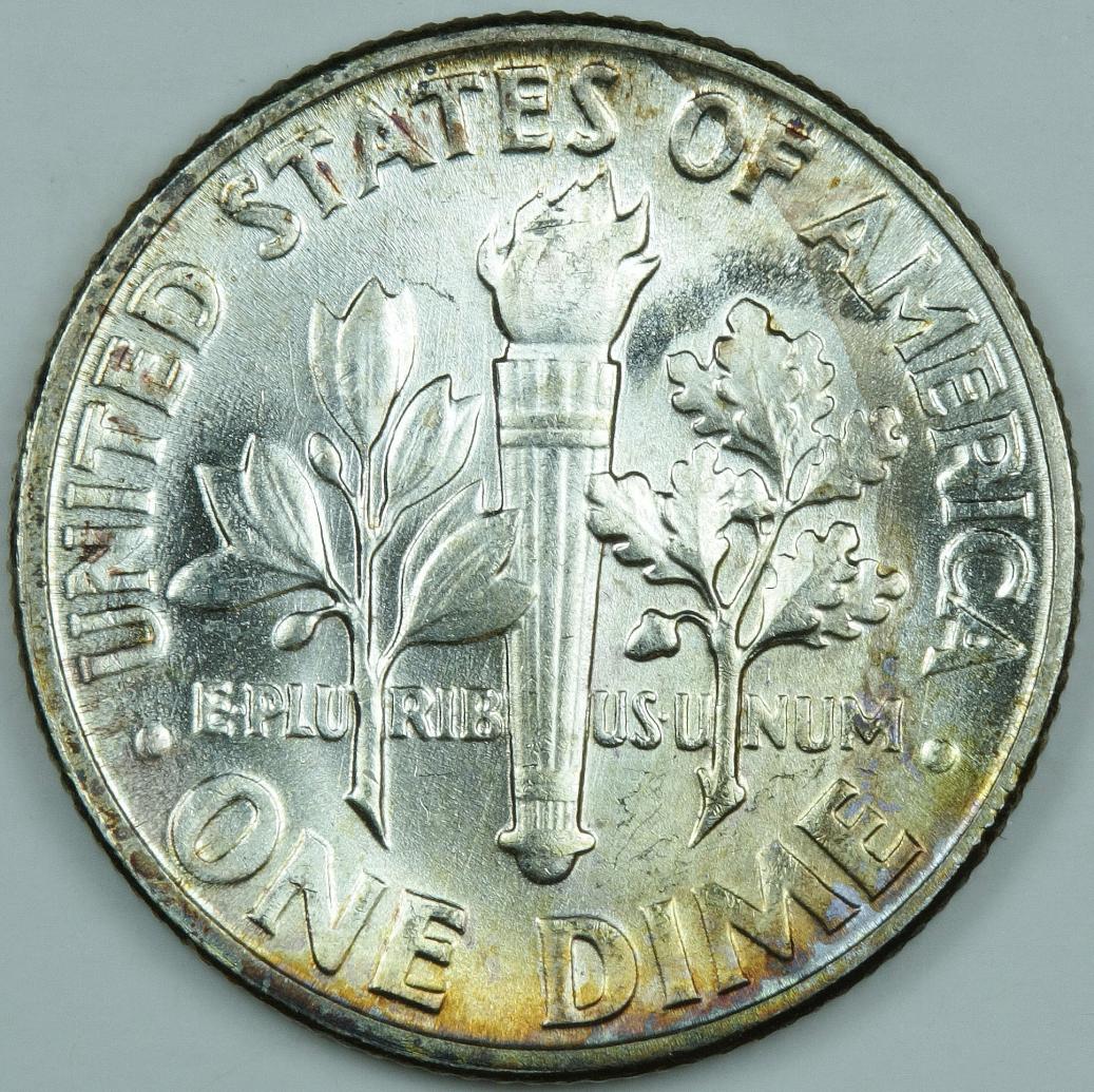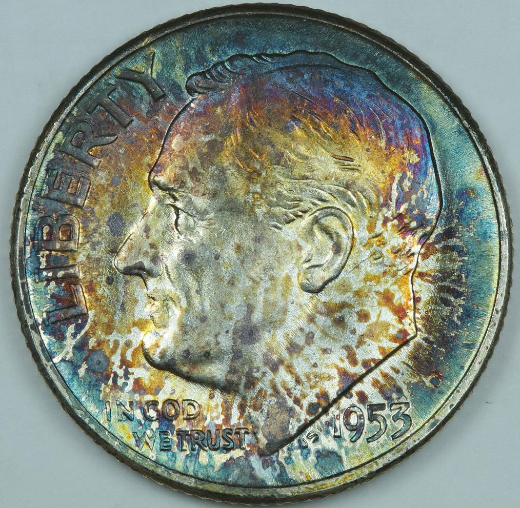Odd look for a 50's mint set silver coin (which is what I believe Matt was alluding to in his title), but that is a REALLY cool toning pattern on the obverse.
