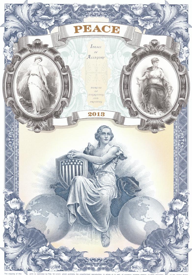 Just received my BEP Allegory PEACE Intaglio Print (1 of 3) from the 2013 Intaglio Print Subscription Program “Ideals In Allegory” series. It's well done but I prefer genuine ABNCo allegories Looks like I'm an ABNCo snob and proud of it. Mike