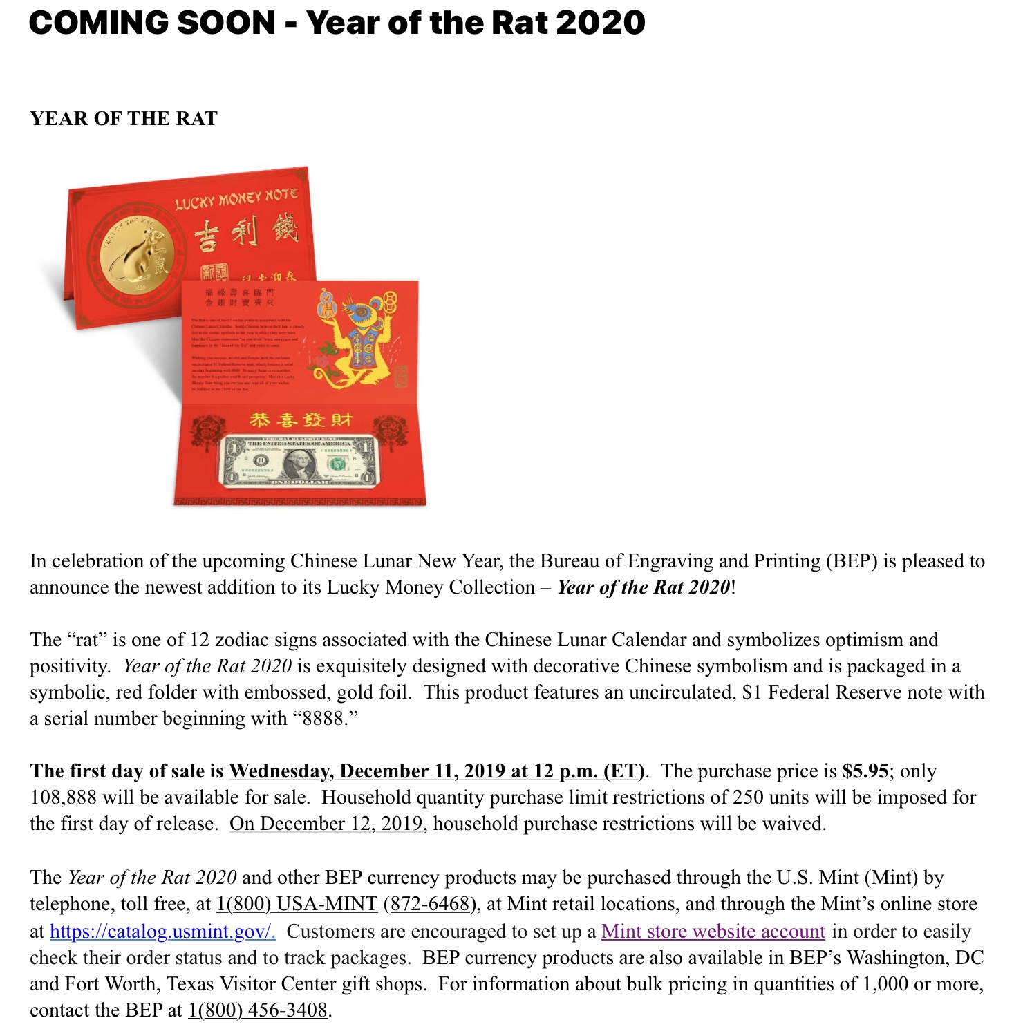 A very nicely centered 2017 Dallas Ace is featured in my BEP issued Year of the Rat 2020 note that arrived today. I am pleased at its overall appearance.