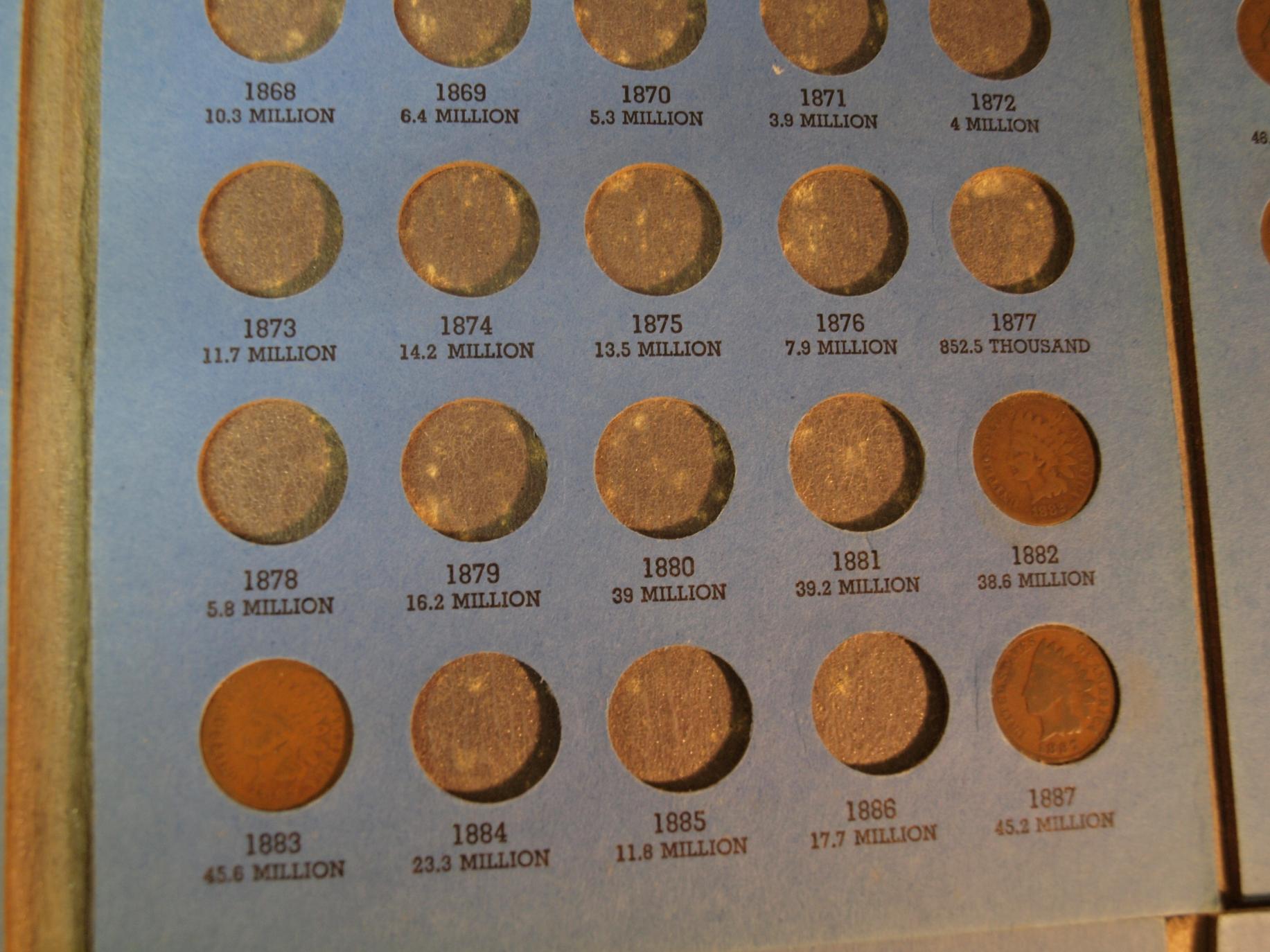 You could also buy him a new one and let him fill up over several years. As far as keys go you could get him fillers which are coins in not good condition used to fill holes in a Whitman or dansco. The 1864 L in filler condition is around $50. 1877 is around $200. 1908 s is $60. The 1909 s is $300. Good luck Preston and prestons mom have tons of fun!!!!!