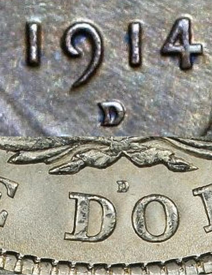 I have a theory, or rather a question about a theory ... Could someone take a mintmark from a 1921-D Morgan for the purpose of counterfeiting a 1914-D cent. I don't have either of these coins, so I can't compare the relative size of the mintmarks and the obvious problem would be that one coin is copper and one is silver. But when I look at these two mintmarks, I see similarities between the questionable 1914-D and a real 1921-D. Is this possible or am I just really reaching here? PS - Feel free to give me the dumbest post of week award with this one! :yes: