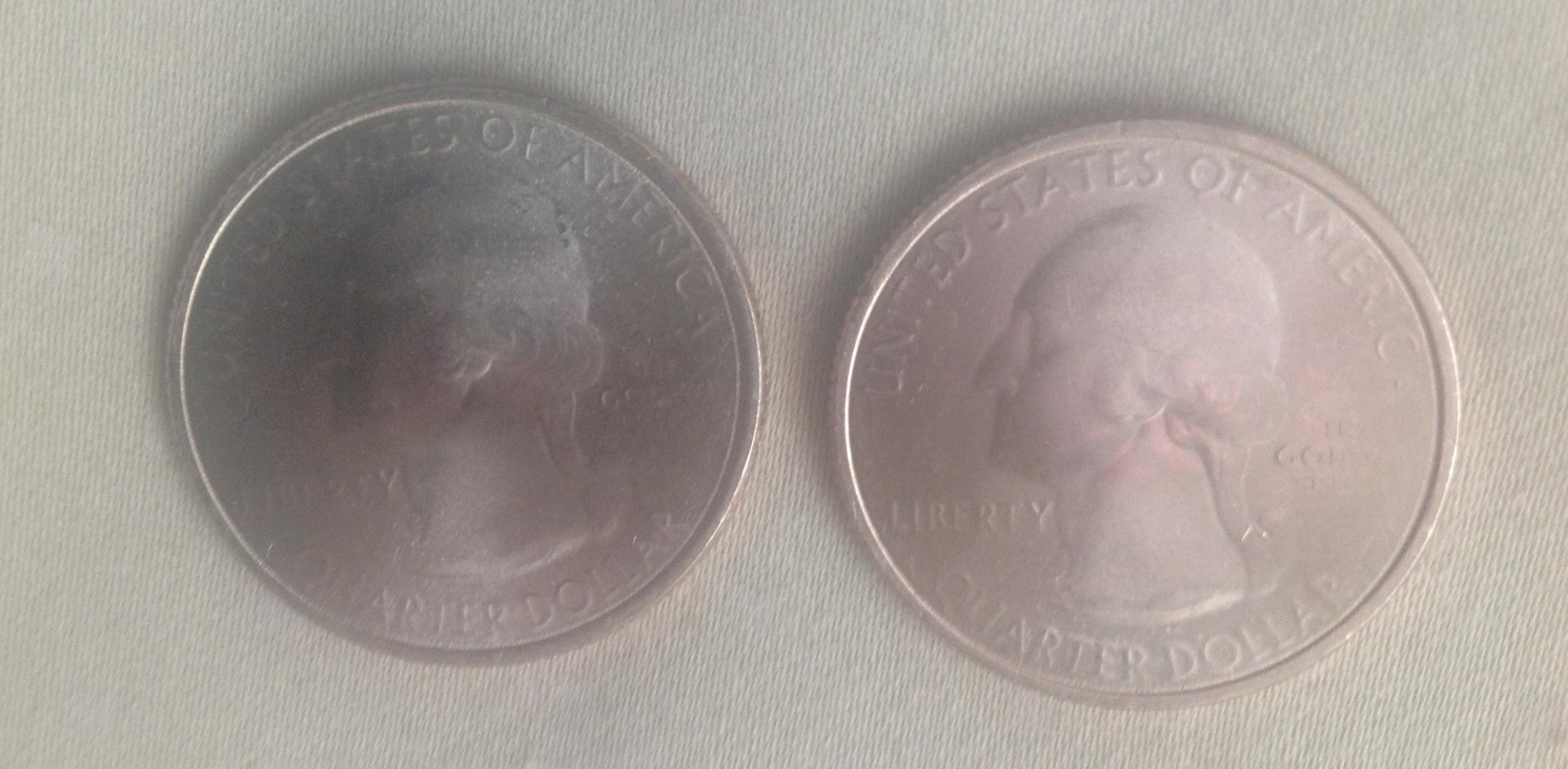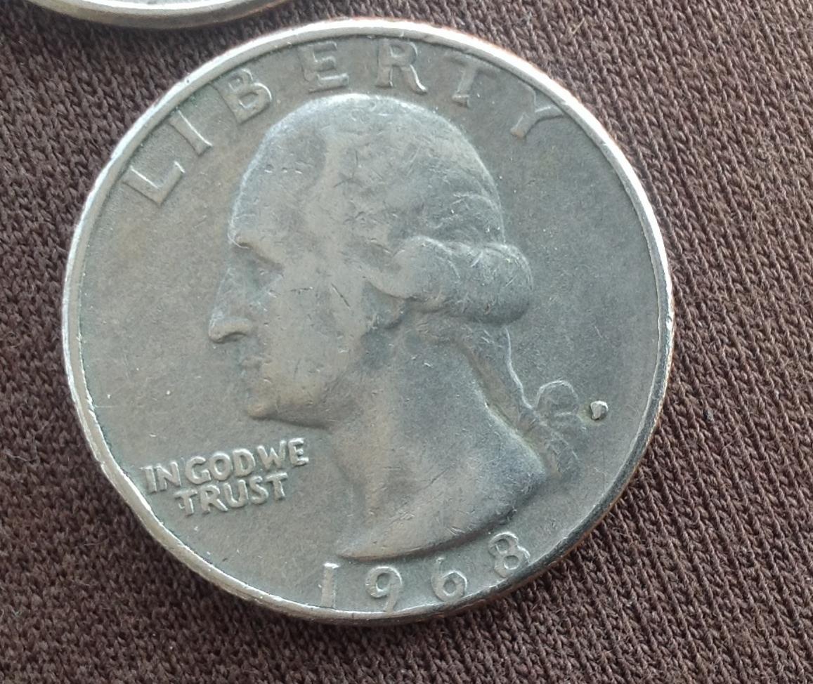 Is the bicentennial just damage The 2 state quarters are almost blank where it says in God we Trust The mint mark in 1968 Washington is filled in And the 1992 Lincoln penny appears to have several erased D mint marks