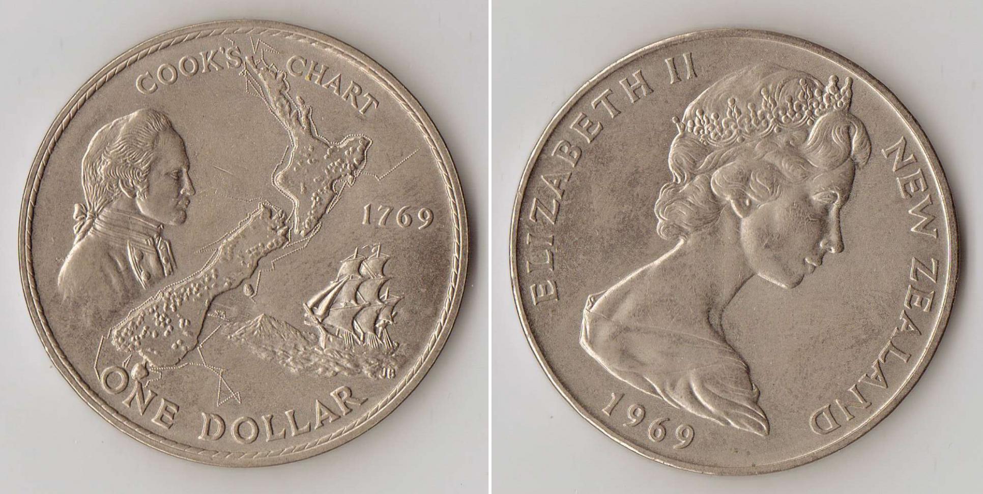 A few days ago I posted some of my favorite big copper coins. Well, I like big coins in general, not just copper, so here are a few huge base metal coins that I got in the last few days. 1951 Great Britain 5 shillings 1969 New Zealand 1 dollar Captain Cook commemorative.