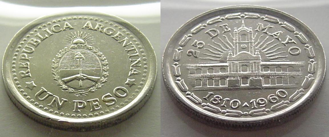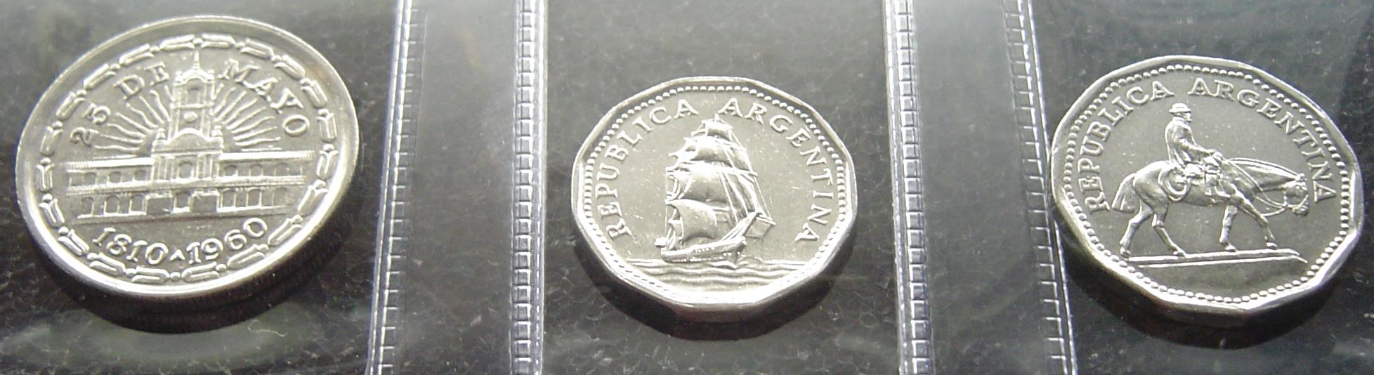 Argentine Copper Coinage Yes I see what you mean about the similarity in the design of the portrait on the Dos Centavos and very early American bronze coinage. I find the Argentinian coins, not just this type, to be beautiful. I have quite a few later 10 and 20 Argentine centavos from the 1920s - the 1940s, they have the same obverse portrait as the 1890 Dos Centavos, and I also have some more modern pesos etc. It sounds like you have a nice collection of these beautiful Bronzes Hiddendragon, very cool. I hope to get more myself, at least one without residue on it. I live very close to the United States of America/Estados Unidos Mexicanos border, and we get alot of nice Central and South American coins at the coin shop I frequent, they often have great stuff, in fact I found this 1890 Argentine Dos Centavos in their 5 for a dollar bin, along with some other unbelievably amazing stuff over the years. Straits Settlements coins are great, I'd love to see them. Also I don't think you would be 'dominating the thread with your pics' as long as you stay on the topic.... plus, didn't you start this thread? ~~~~~~~~~~~ ~~~~~~~~~~~~~~~~~~~~~~ ~~~~~~~~~~~ Anyhow here are some pictures of my Argentina 1890 Dos Centavos (first three pics), note the residue.... shame too, since the obverse portrait is quite nice, the reverse less so..... I also include a pic of a more modern Argentina '1860 - 1960' Un Peso (fourth picture), which has a beautiful design in my opinion. The final picture is of the obverses of three Argentine coins from the 1960s (make sure you click the picture and get it fullsize in it's own screen, it is big and shows them all well), including the 1960 Un Peso from the picture above, as well as a 1963 5 Pesos, the one in the middle with the ship on it, and a 1964 10 Pesos, the one to the far right with the cowboy on horseback.... all three of which I find to be beautiful designs. They were given to me by a man I worked for who traveled the world, so I am fairly sure he got them in Argentine around the dates on them.
