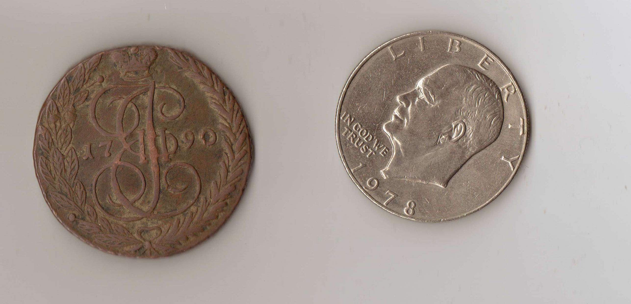 I decided I had to go out and get a Russian 5 kopek after posting this thread, and I got it today in the mail. This thing is a monster! It feels like it weighs about a pound. It's very big in diameter and very thick. Here's a picture, with a dollar coin for comparison.