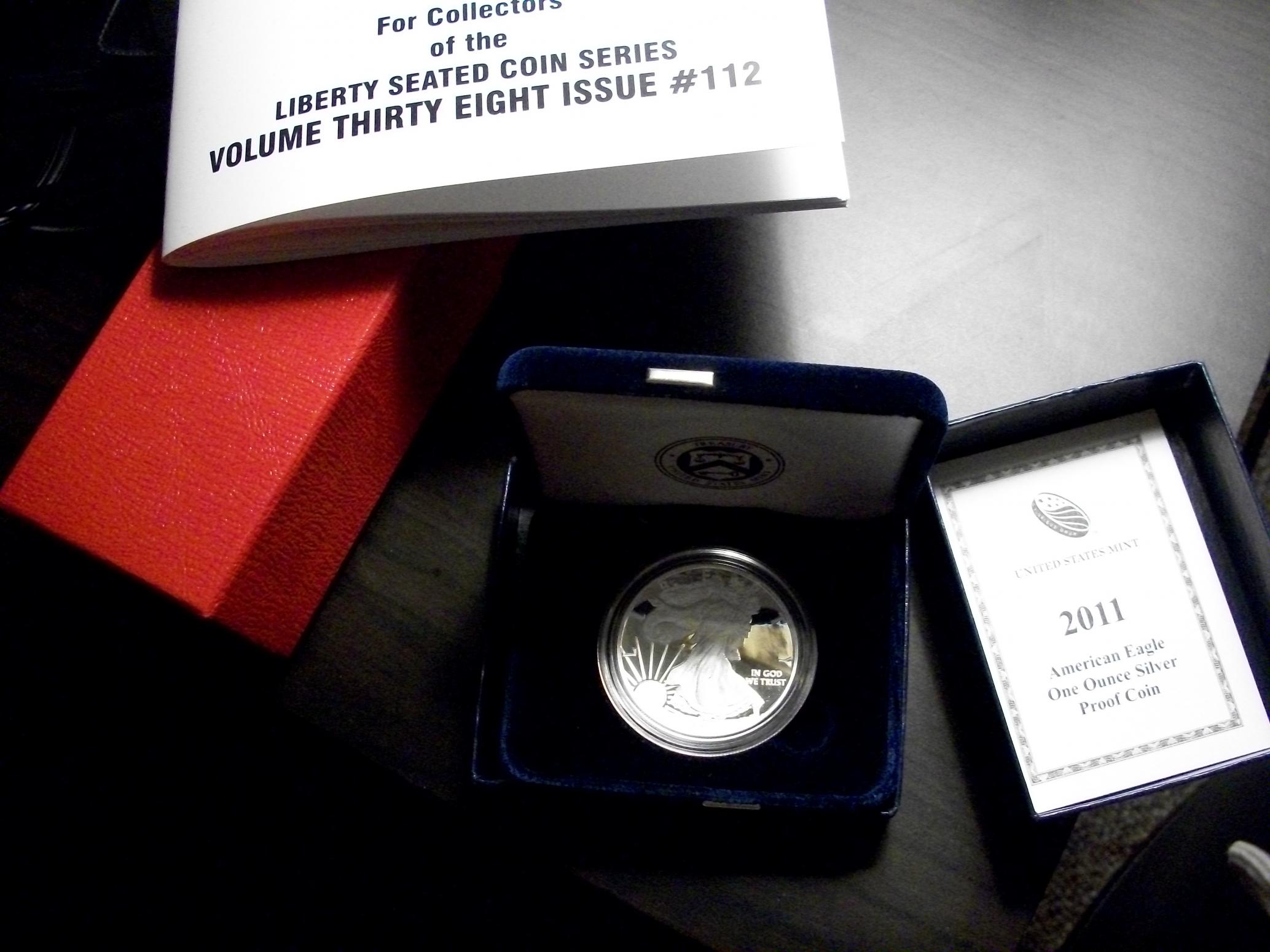 Just want to extend a big thanks to the guys at Coin Show Radio.:thumb: I entered into their contest early in December and completely forgot about it. When I came home Christmas Eve morning, I had an email saying I won! Pretty cool! Anyways, here is the 2011 Proof ASE. Sorry for the pics, but I am no photographer.