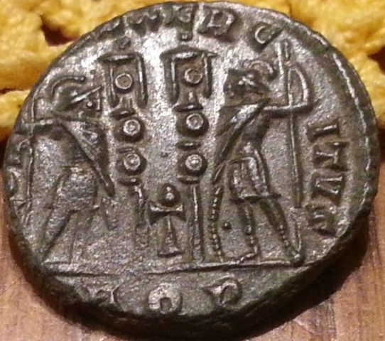 Since yesterday was my birthday, I 'arranged' a few purchases (or winning bids) to fall on or after the 22nd. Both coins are of a 'type' I was missing by denomination (dupondius ) or 'device' (the reverse cross on the follis and a bit scarce)---and they are very affordable budget varieties. Dupondius of Vespasian; Rome 74 AD, 11.90 grans, 26.8 mm IMP CAESAR VESPASIAN AVG Laureate bust right PON MAX TR POT PP COS V CENS Winged caduceus between cornucopia RIC 756 Follis of Constantine I, Aquileia mint CONSTANTI NVS MAX AVG Laureate bust right GLOR IA EXERC ITVS Cross in center 'O' on banners, AQP RIC VII