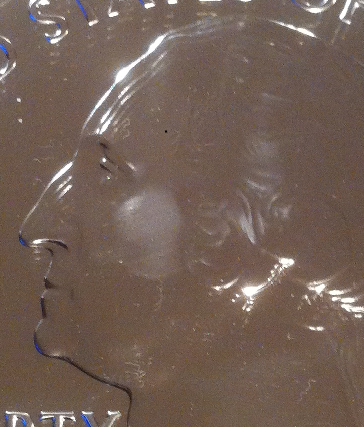 I presume APMEX had plenty on hand because they ordered their full allotment of 3,000 and have sold only the first 1,000 so far. They have yet to offer the remaining sets for sale. I did tell APMEX customer service that the replacement coin had exactly the same defect as the original one. They sent me an email saying "This is how they look – every single one of them." I presume they are referring only to the Yellowstone version because my other four coins do not have the spot on Washington's cheek. I'm pretty sure it's a rub mark and not a milk spot. I suspect it may be that the reverse design has an elevation at the just the right (or wrong) spot to rub on Washington's cheek when they are stacked in tubes. The others are far from perfect, though. They all contain parallel scratches that look very much like someone attempted to polish them at some point. You can see it to some degree in this picture. Based on what I've seen, I would be amazed if any of these will grade MS70. I'd like to know if anyone else has noticed that the Yellowstone versions have a particular problem with a spot in this area. Obviously, these aren't made to the same standards as numismatic coins and I suppose we'll all have to wait for the numismatic versions.
