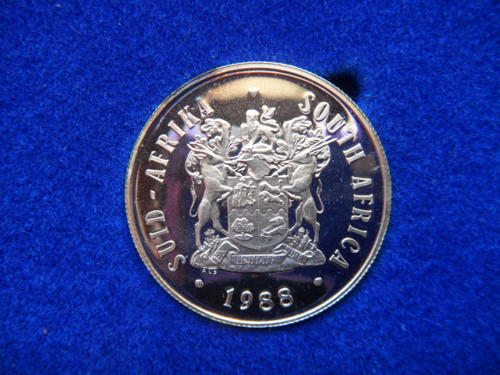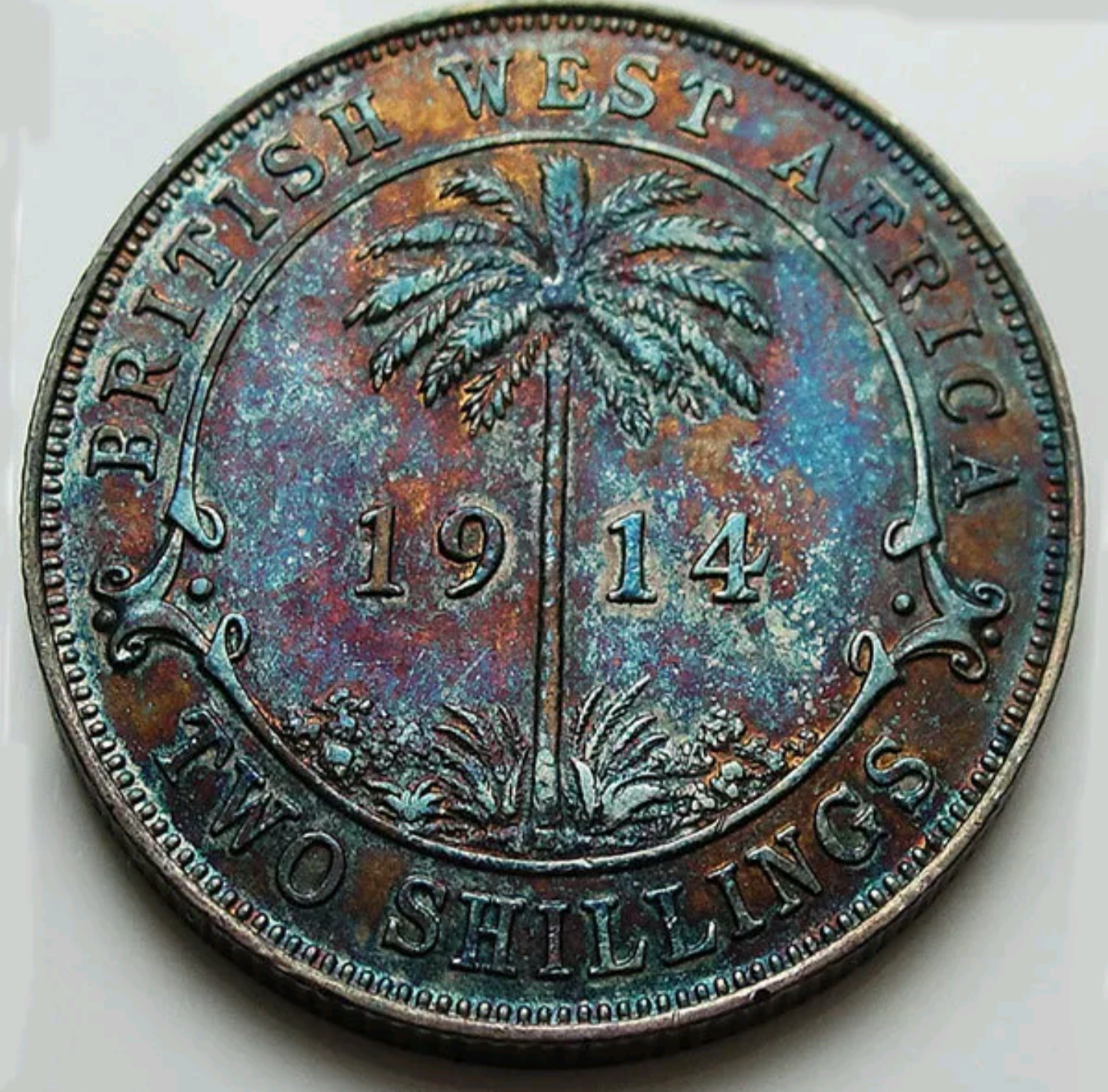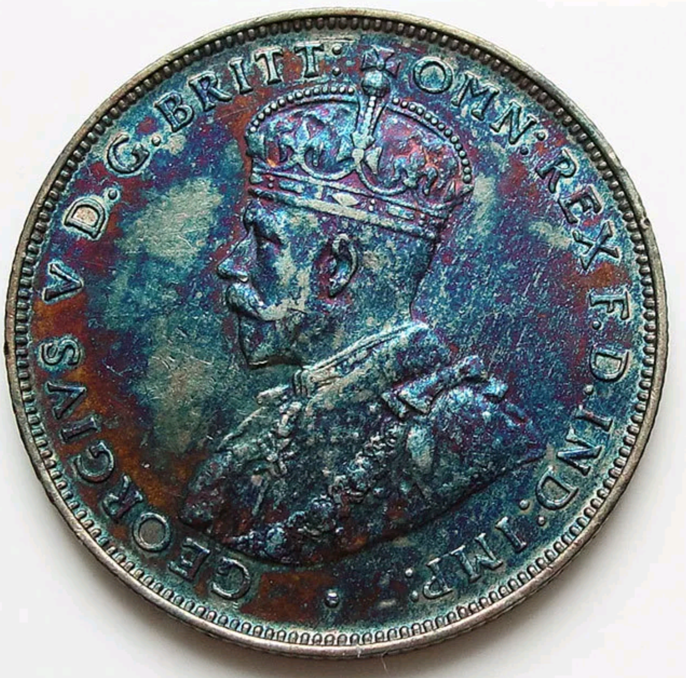 Blue toned South African coin ... toning started on obverse. The coin is stored with reverse side facing upwards