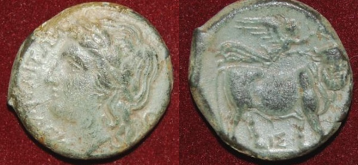 PLATE COIN: Campania AE Apollo-Achelous -275-250BCE PLATE COIN 3 KNOWN RARE SNG ANS 474 - Listed Potamikon pg 232 Plate 343 (Author @Nicholas Molinari )