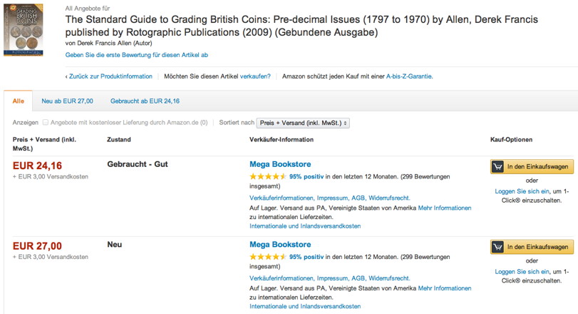 Here are some books I want. The Standard Guide to Grading British Coins: Pre-decimal Issues (1797 to 1970) This book can be had for 13 pounds ($21.63) shipped in the UK. The cheapest I can find it in the states? $770! http://www.amazon.com/Standard-Guide-Grading-British-Coins/dp/0948964839 2014 Collectors Coins GB is 5.35 pounds in the uk. I can't find it anywhere in the states.