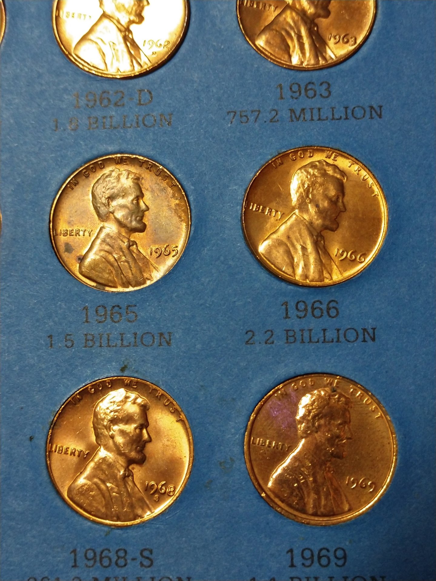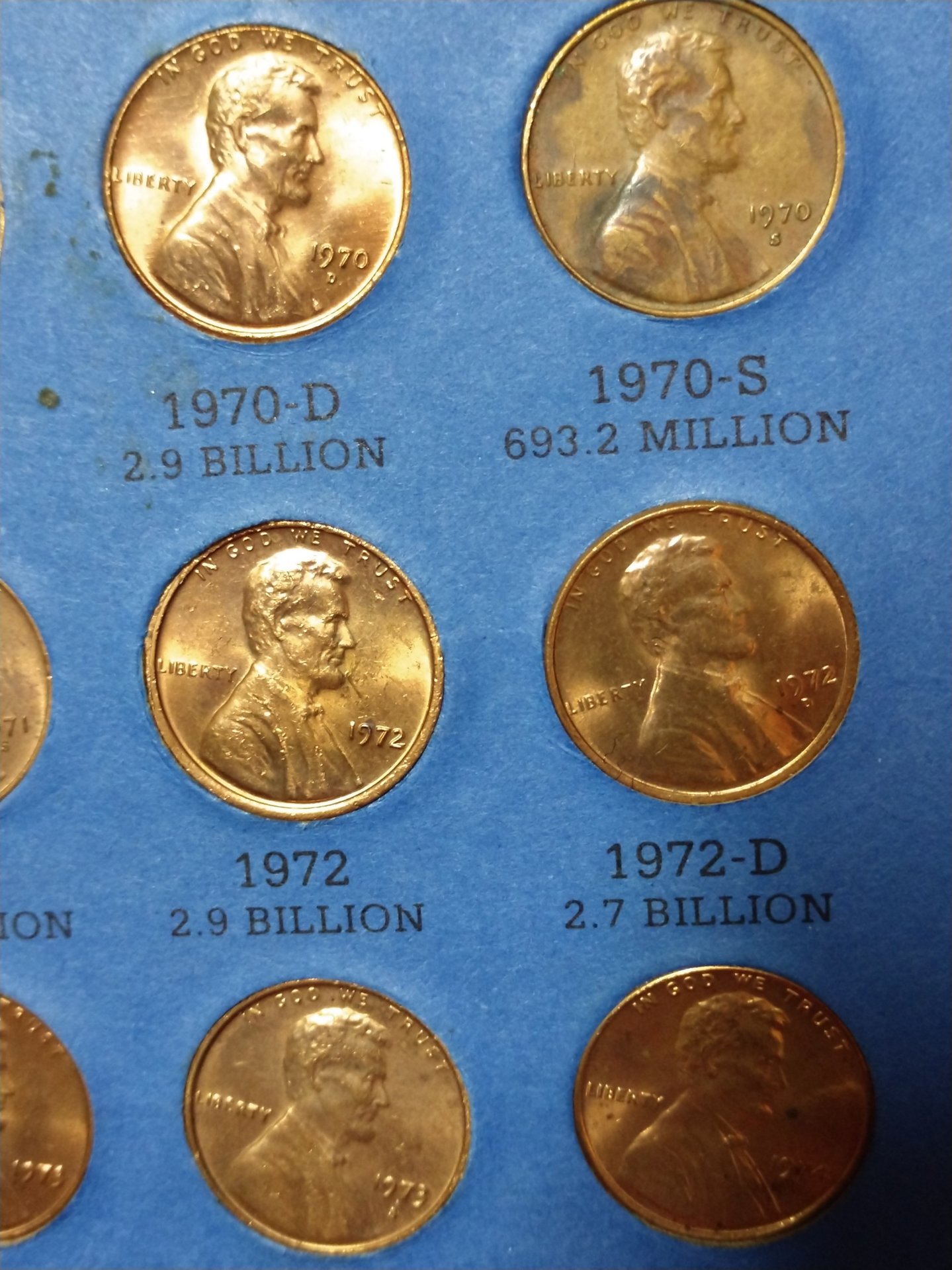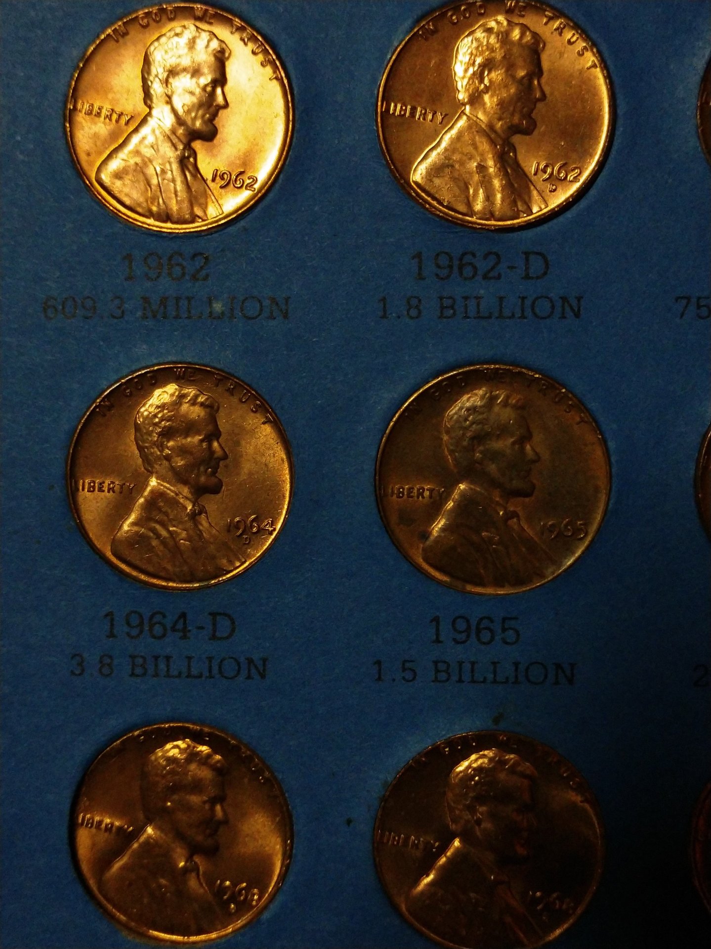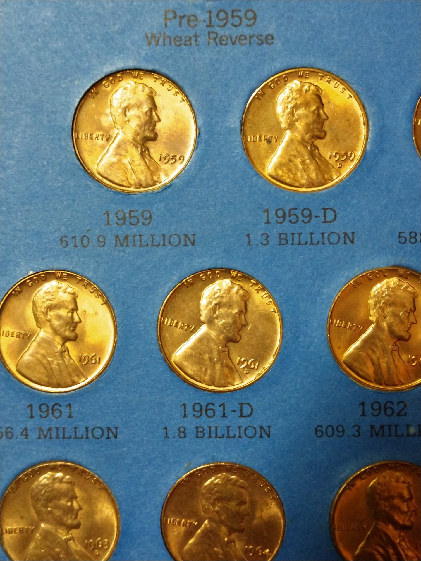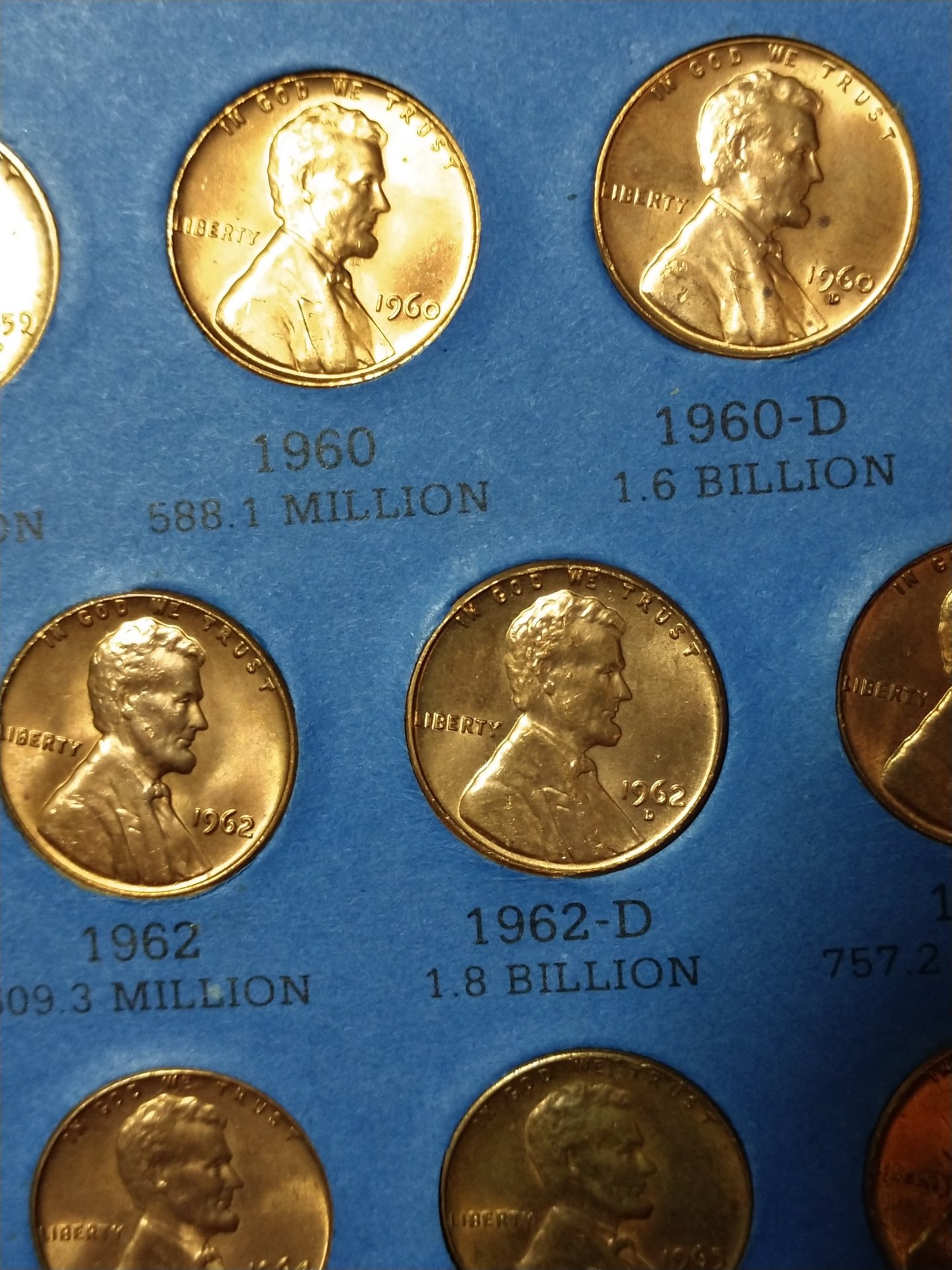 So, I came across this very filled up book of LMC which has some coins that look like they're in perfect condition possibly even some proofs. The majority of the key date ones almost look to be the doubled die ones. I know you can't tell from these photos but I didn't know which to take photos of by themselves. So, you can skim across these pics and tell me which coins you think I should post separate photos of and I will do my best. If you don't want to see them then that us fine too.