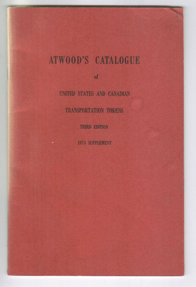 2. "Atwood Transportation Token Catalog, 1973 Supplement," Does NOT include the basic Atwood catalog, only this later Supplement. Very good condition, 38 pages, edited by John Coffee, dated May 20, 1973. Image T-CT006b.