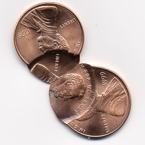 This is mated pair consisting of two chain-struck cents. There's no reason to think these had any help as chain strikes are pretty common (although finding both members of the pair is decidely uncommon).