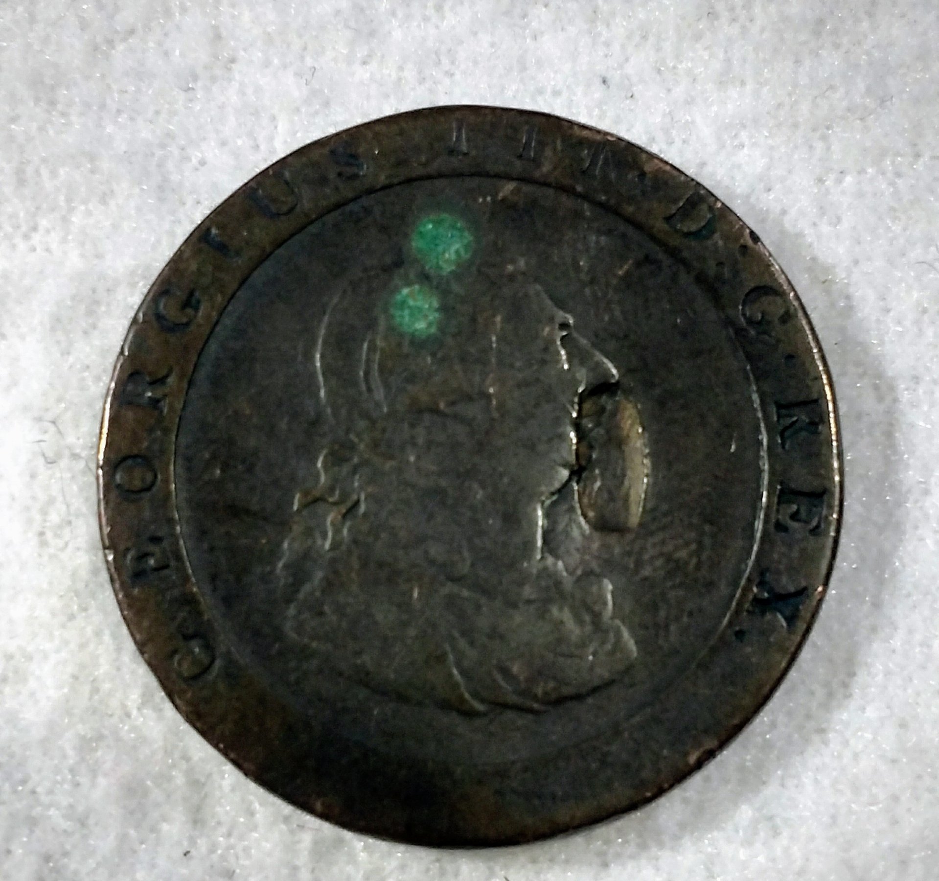 Looks like a 1797 cent coin, 1799 half-cent and a 1929 half-cent. BTW George III was king during the American Revolution.