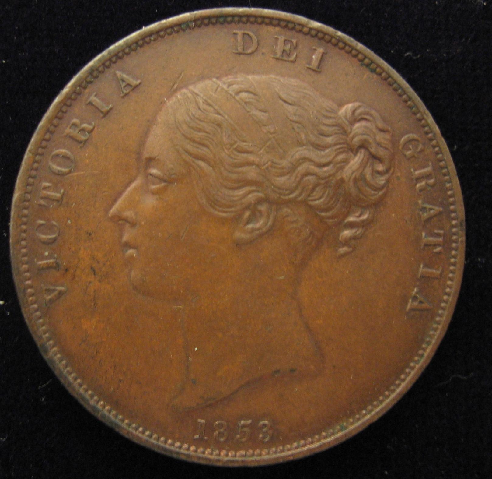 I tend to collect the pre 1860 Penny`s, they were thicker and larger and better struck in pure copper, here`s one I got today compared to the more modern bronzes, note the date is on the obverse.