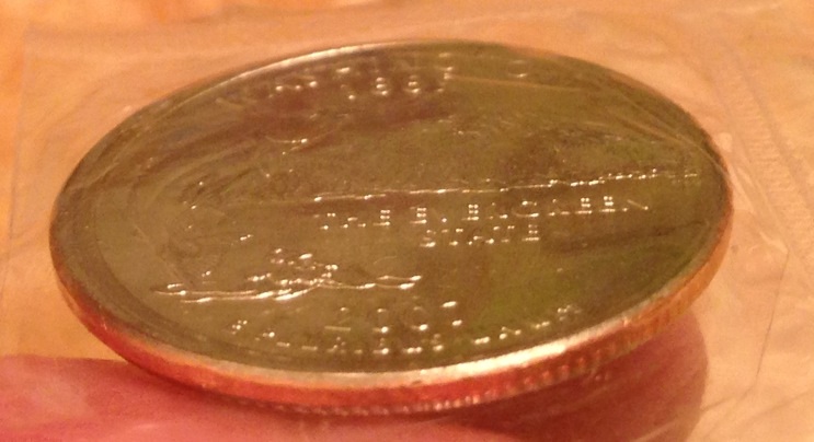 I was at a local coin shop today looking through state quarters. He sells BU state quarters that he puts in small plastic packs. He has them separated into small bins by state. While I was going through them , I found what I believe is a centered broadstrike. I immediately noticed it so I set it aside and ended up paying $1 for it. I knew it was some type of error but did not know if it was worth much. I figured for $1 I wouldn't lose out on much. I know the pictures aren't very good, I made them with my phone in a hurry, but could anyone with more experience give me their thoughts on the coin? Thanks!!!