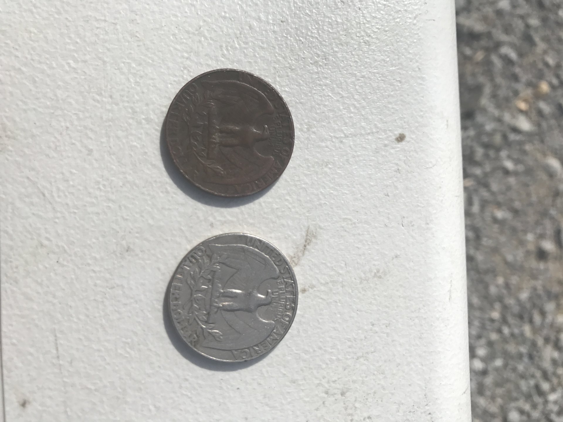 I have found a 1974 quarter that is completely brown. I have seen similar images of this coin circulating around the internet. I have thoroughly cleaned it and have tried scratching it off. I have read a forum (see link) but it seems it is old and came to no conclusions. I'm ruling out the possibility of it being stained by earth because it appears to only happen to the 1974 quarter. Is this a completely copper coin? Is it a mistake? Is it rare? https://www.cointalk.com/threads/brown-1974-quarter.17271/