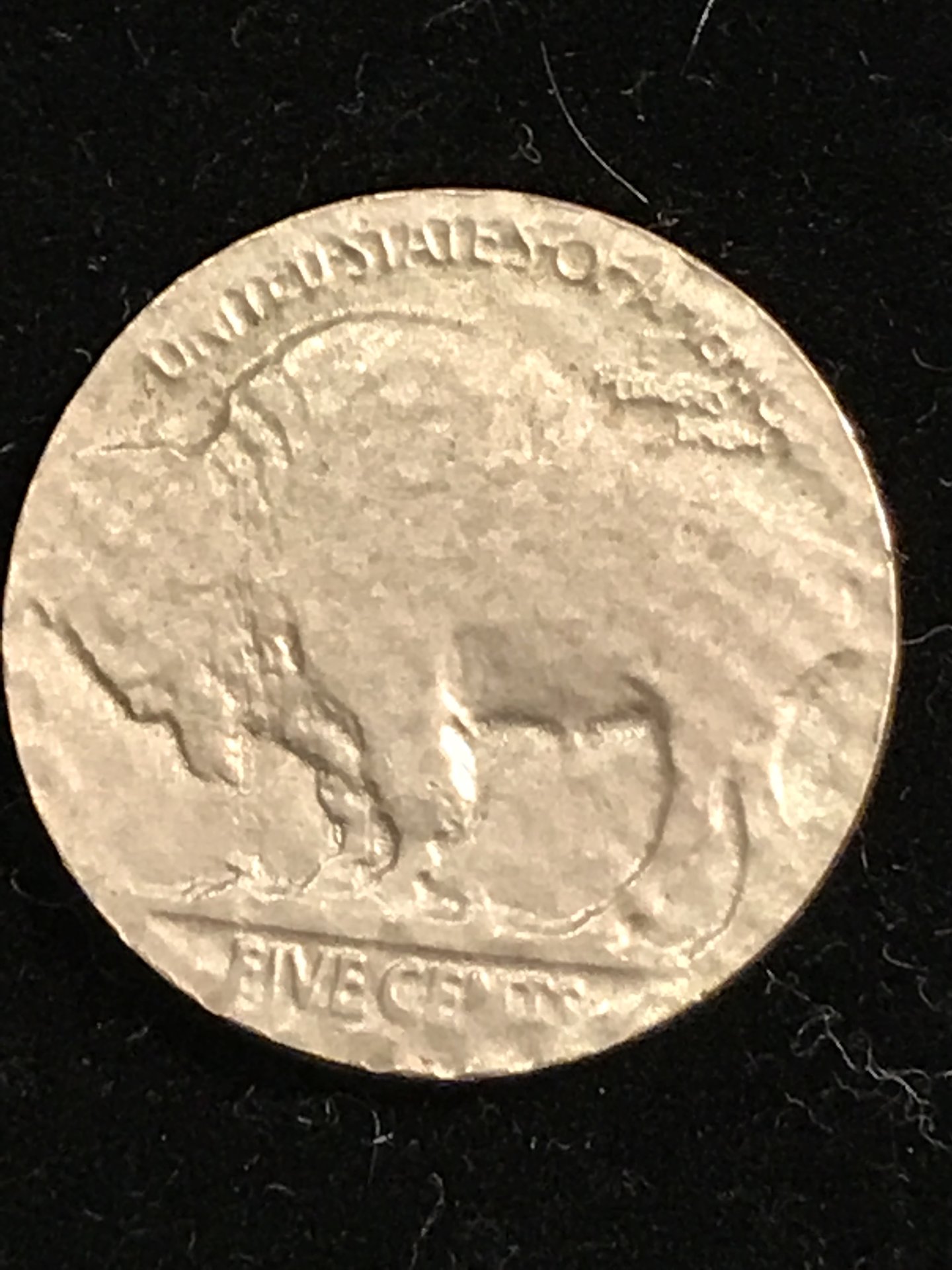 Looking for opinions on this buffalo nickel anomaly. It appears struck through cloth or material of some kind on the reverse. The stretching of the letters leads me to believe it is not PMD. Thanks in advance.