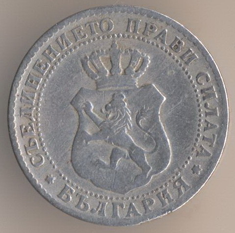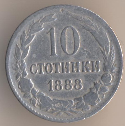 10 stotinkas 1888, copper-nickel, weight - 4 g., size - 19 mm, mintage - 10000000 pcs. Brussel Mint (Belgium).