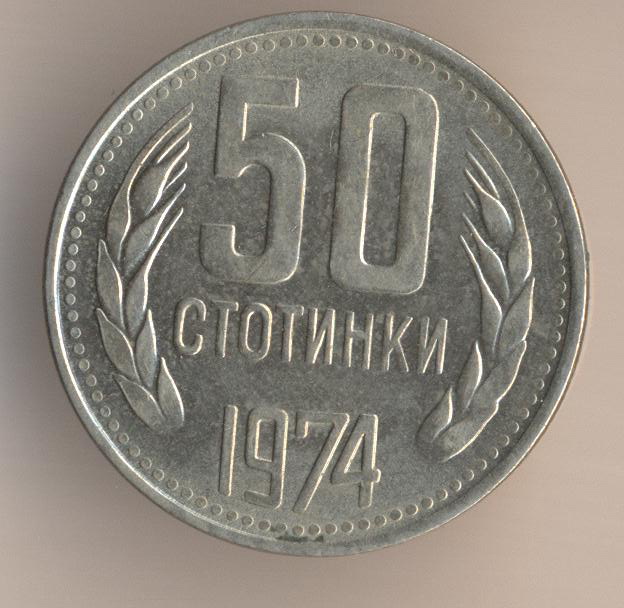 50 stotinkas 1974, copper-nickel, size - 23 mm, weight - 4 g., mintage - unknown. Artistic design - unknown.