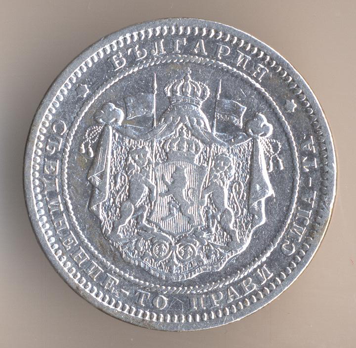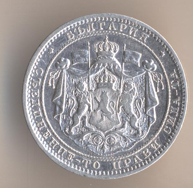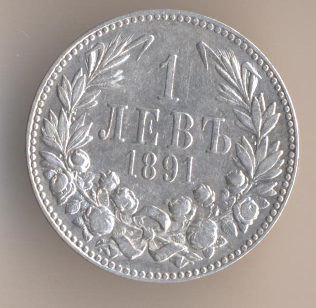 1 lev 1891, silver .835, weight - 5 g., size - 23 mm, mintage - 4000000 pcs. Kremnitz Mint (Austria-Hungary). Artictic design - Anton Sharf.