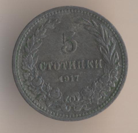 5 stotinkas 1917, zinc, weight - 2 g., size - 17 mm, mintage - 53200000 pcs, artistic design - unknown. Kremnitz Mint (Austro-Hungary).