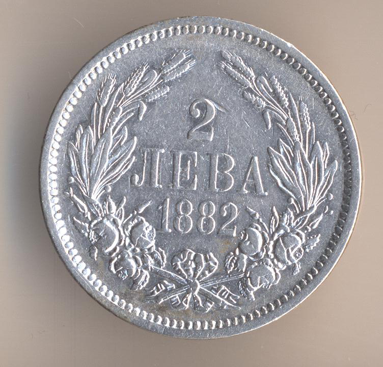 2 levs 1882, silver .835, weight - 10 g., size - 27 mm, mintage - 2000000 pcs, artistic design - Nikolaj Formas. St. Petersburg (Russian Empire).