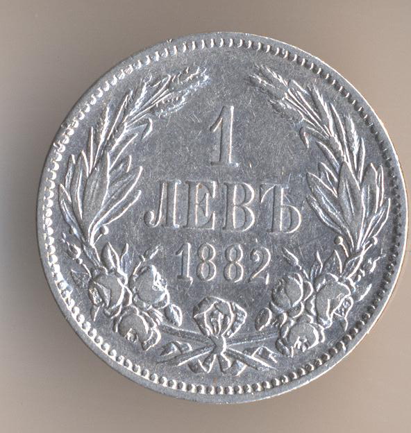 1 lev 1882, silver .835, weight - 5 g., size - 23 mm, mintage - 4500015 pcs, artistic design - Nikolaj Formas. St. Petersburg (Russian Empire).