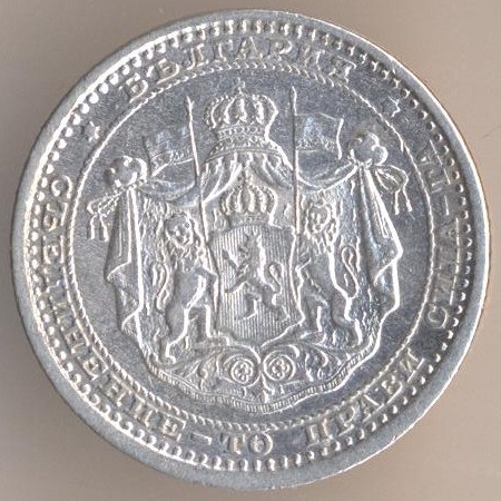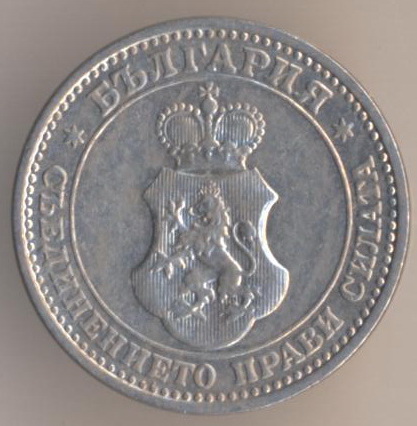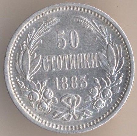 50 stotinkas 1883, silver .835, weight - 2,5 g., size - 18 mm, mintage - 3000000 pcs. Engraver: Nikolaj Formas. Minted in St. Petersburg, Russia. Single release only.