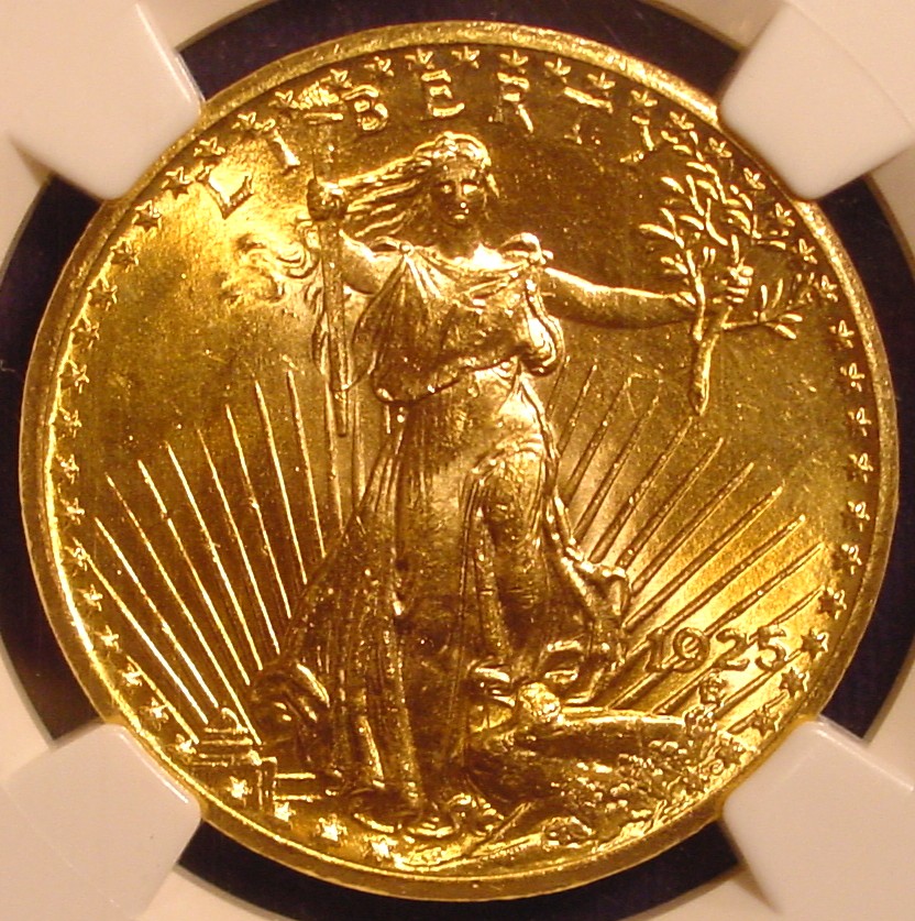 Here is my "place to park some (dumb, as it turned out) money coin." This is just one of many examples that show timing is everything in finance. I've made some good money from gold in the past, but won't be on this coin unless the bullion market improves. The coin has blast luster and is correctly graded as an MS-64.
